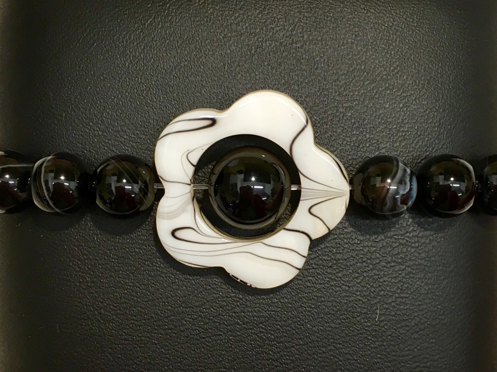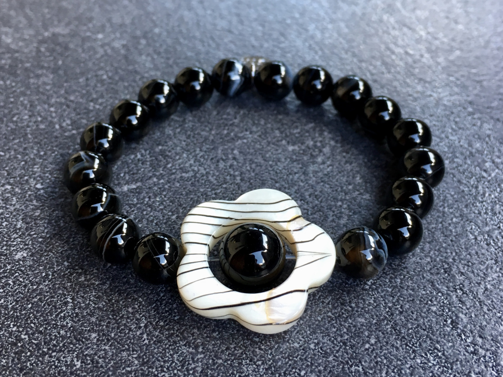 | Rozměry: | achát kulička cca 8 mm, středová 10 mm, perleť kytička cca 2,5 cm |