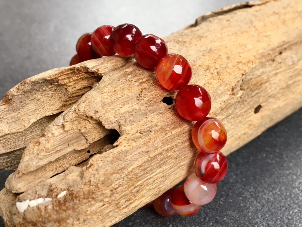 Achát faset červený náramek - kulička 10 mm