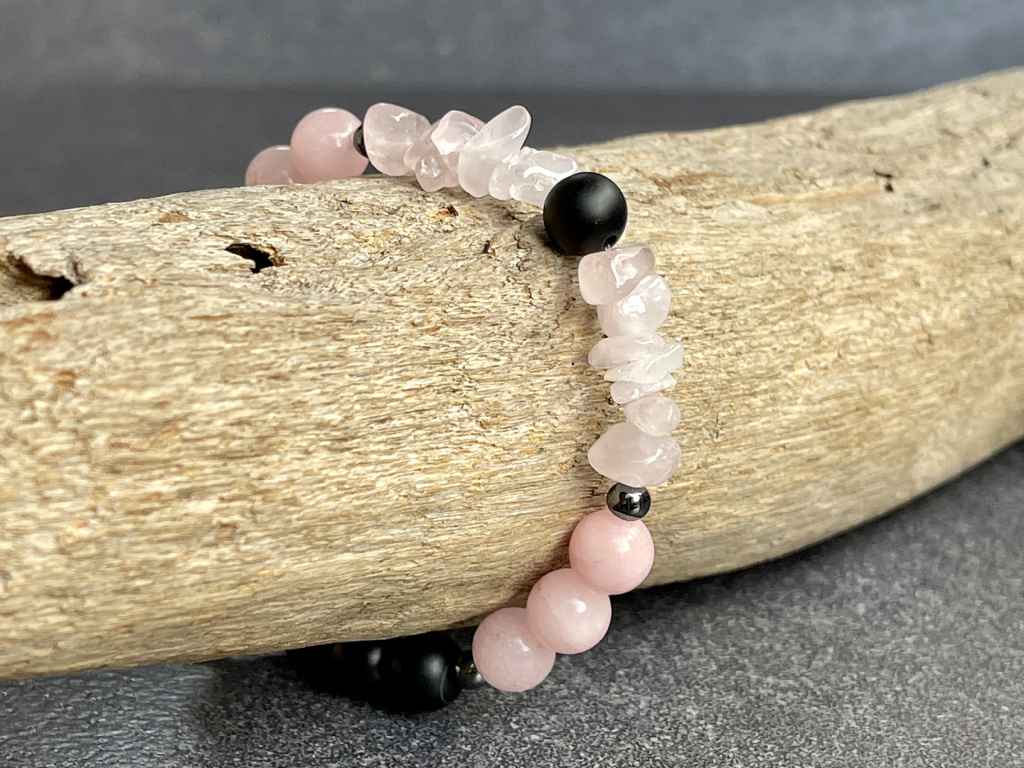 Náramek "KLIDNÁ MYSL" - Achát, jaspis, růženín, hematit náramek - mix tvarů