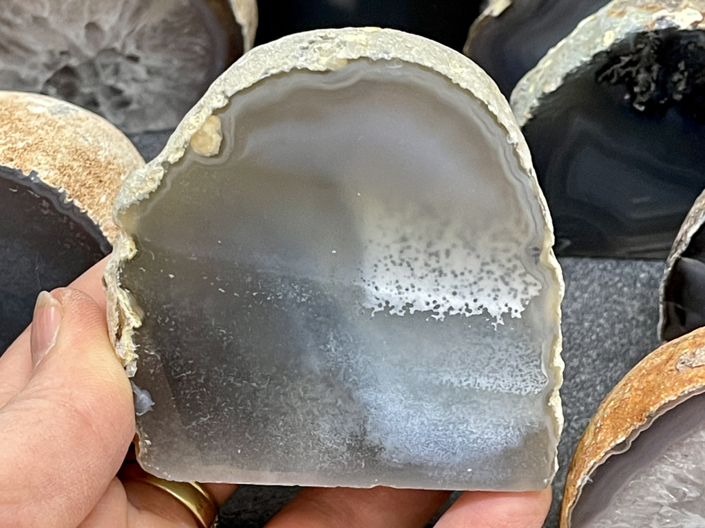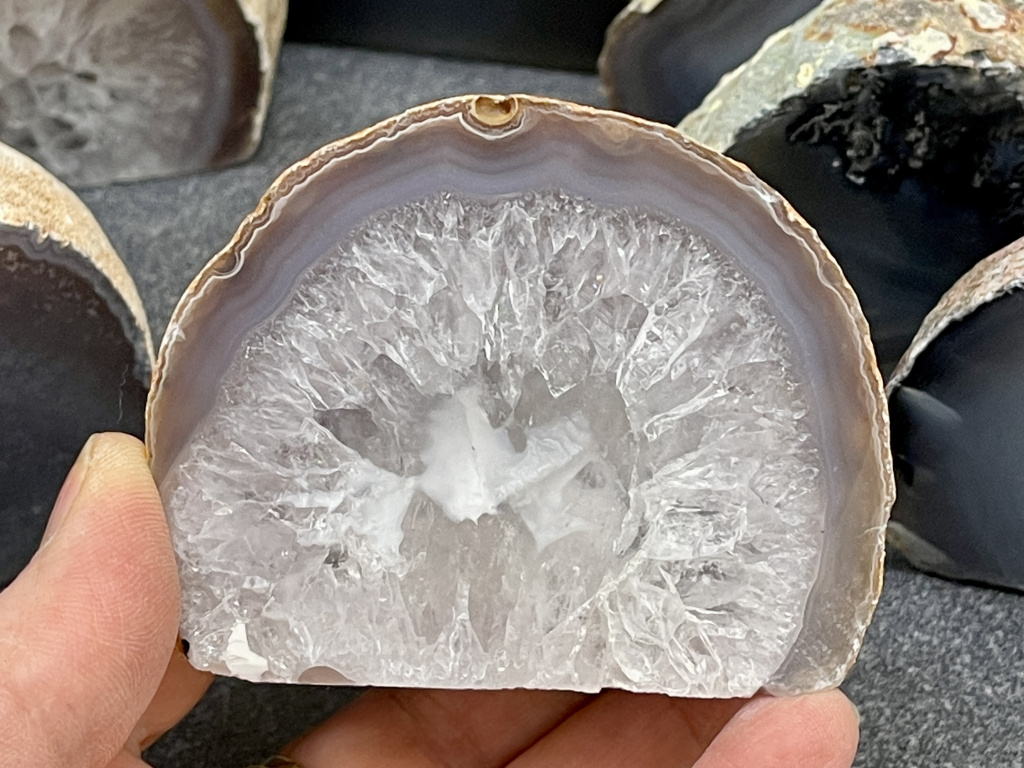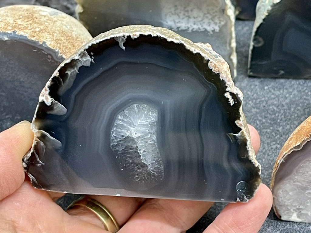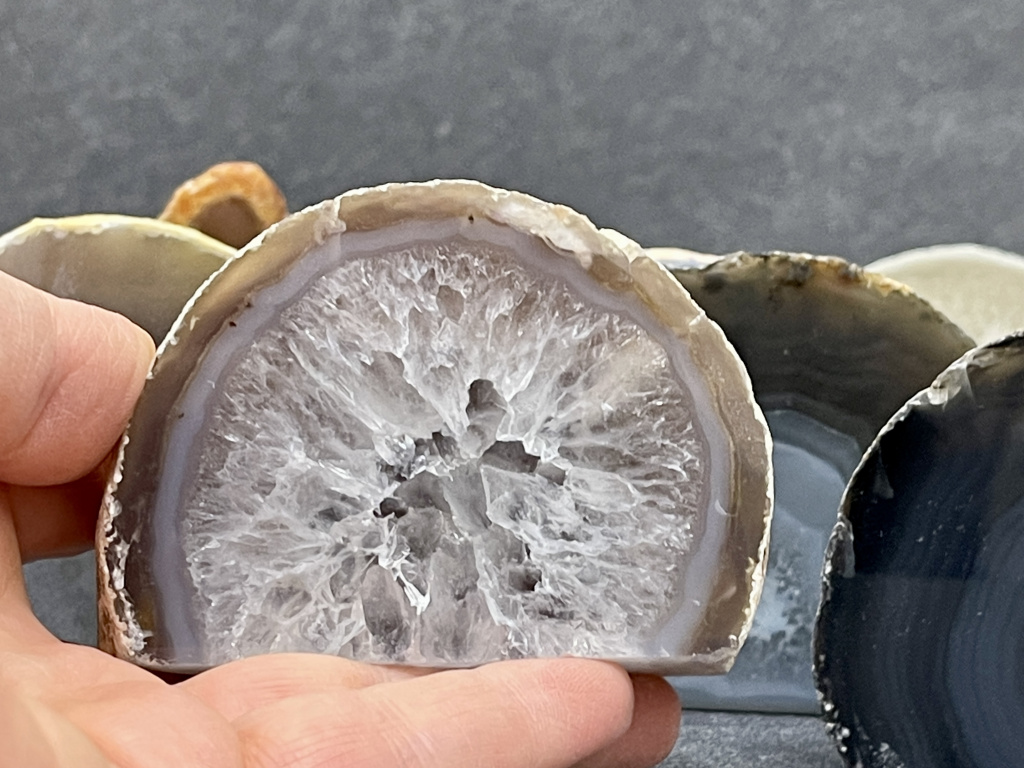 - Přírodní krása: Každá achátová půlka je unikátní, s nádhernými vzory a barvami, které přirozeně zkrášlí každý interiér.