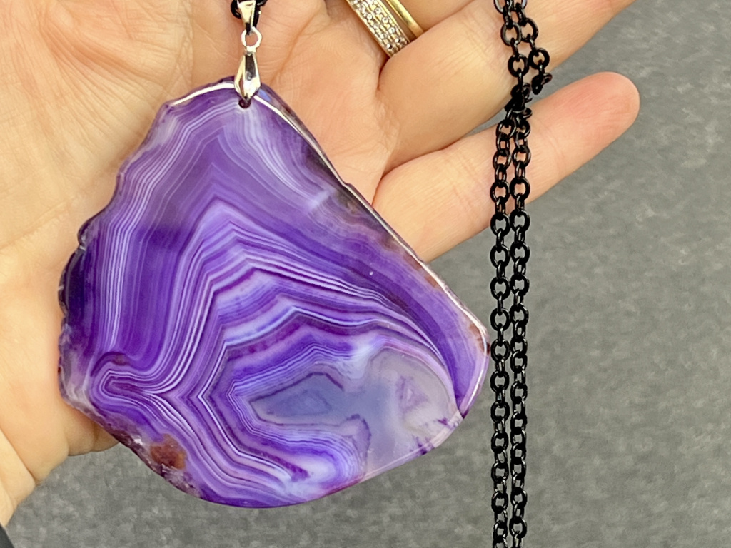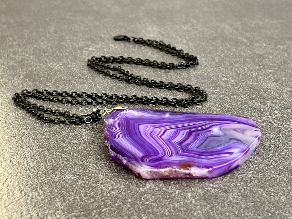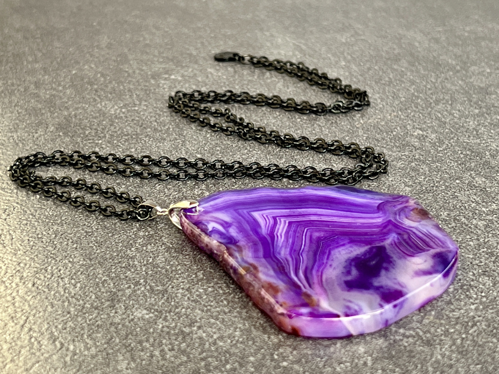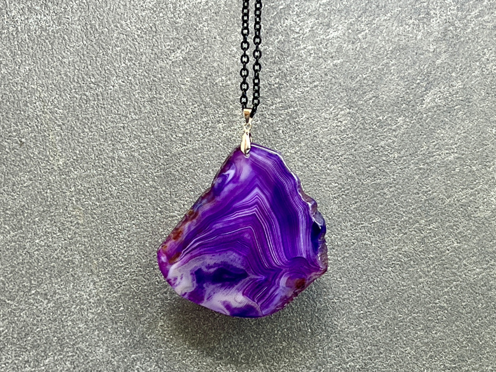 ACHÁTOVÝ PLÁTEK FIALOVÝ (dobarvený) - NÁHRDELNÍK