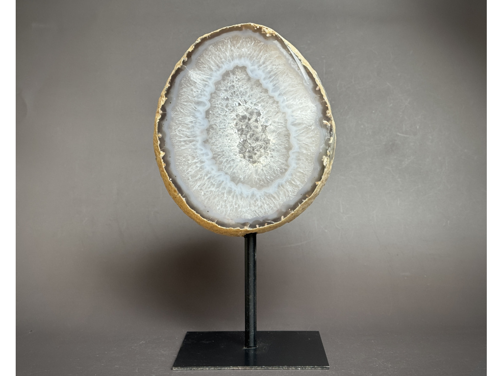 - Přírodní krása: Leštěné hrany a povrch achátu odrážejí světlo, čímž vytvářejí fascinující hru barev a vzorů.