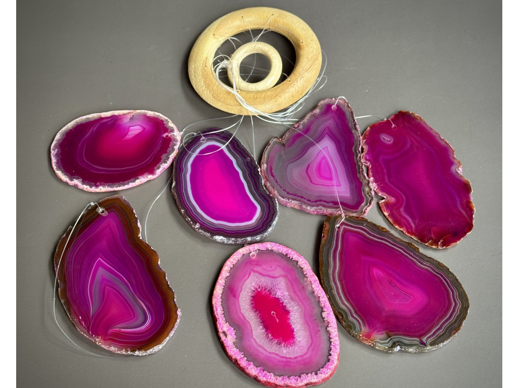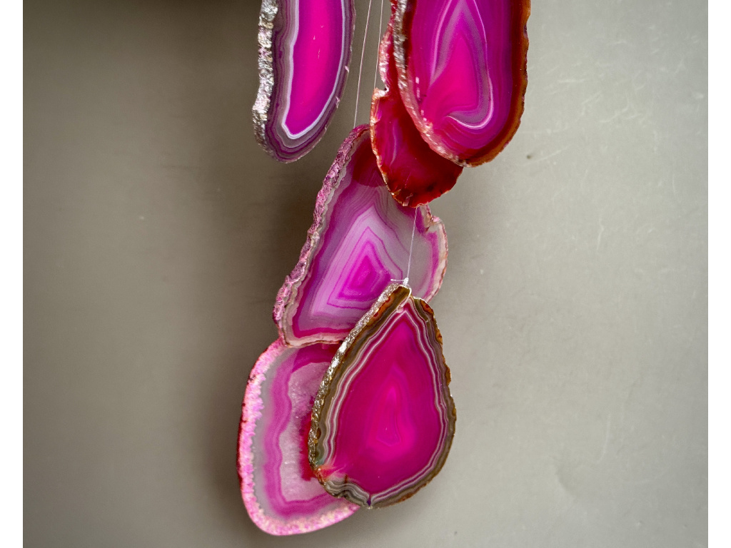 Obklopte se kouzlem a harmonií s touto nádhernou achátovou zvonkohrou, která je dokonalým spojením přírodní krásy a zvukové terapie. Každý achátový plátek byl pečlivě vybrán a zpracován tak, aby vytvářel nejen esteticky přitažlivý, ale i energeticky vyvážený předmět. Nechte se unést jemným cinkáním, které přináší klid do vaší duše a pozitivní vibrace do vašeho prostředí.