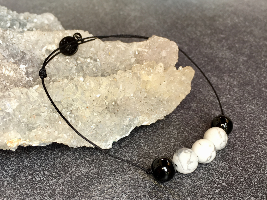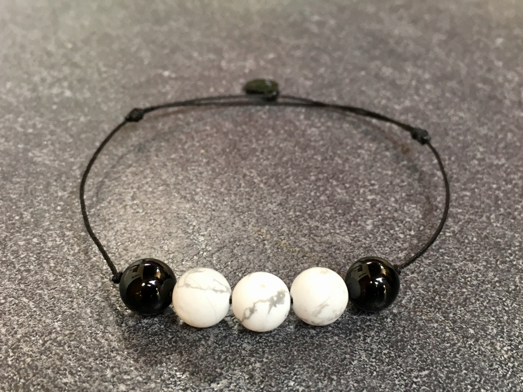 Achát černý, magnezit náramek simple - kulička 8 mm