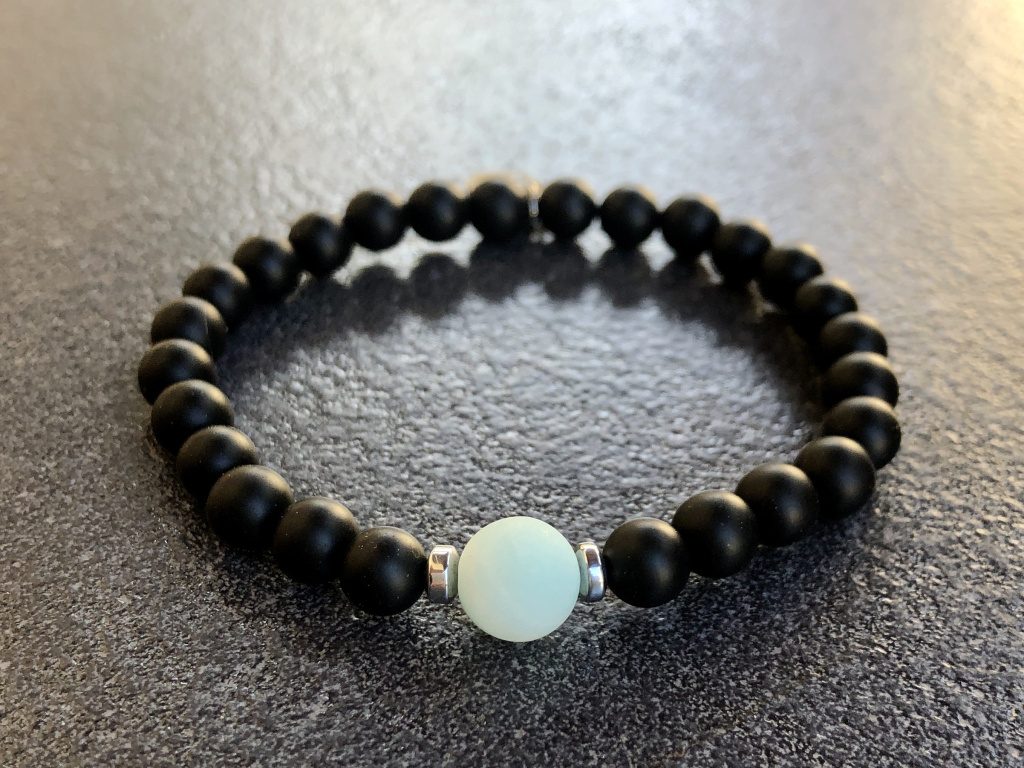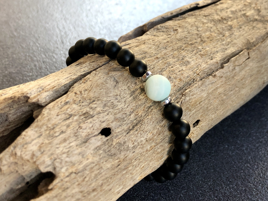 Achát černý mat, amazonit mat náramek - kulička 6 mm