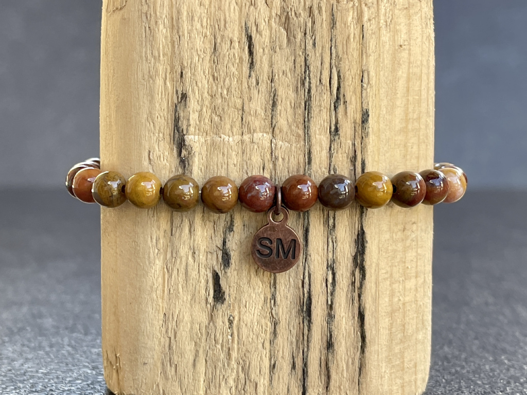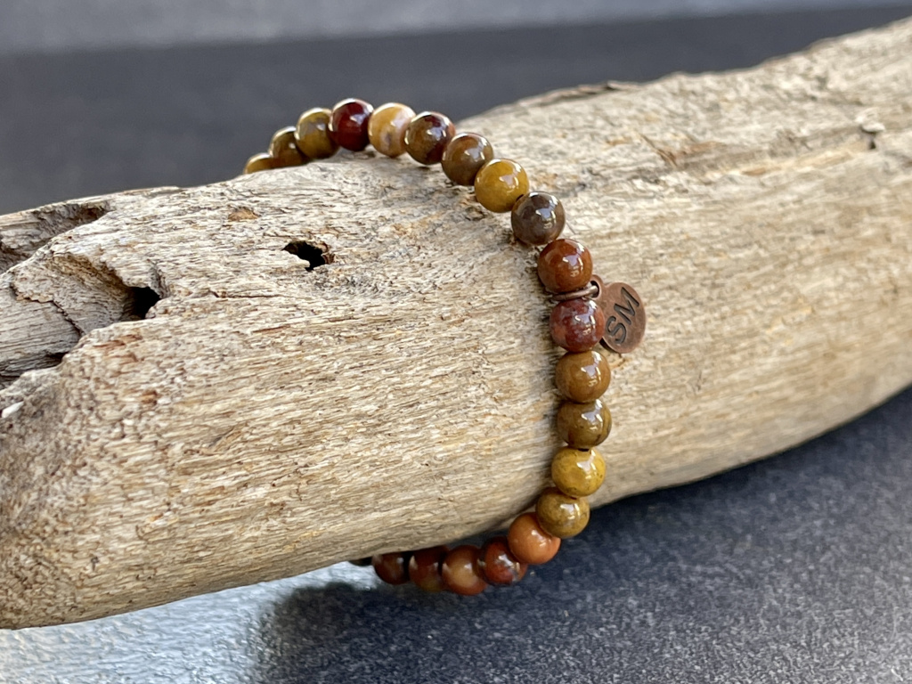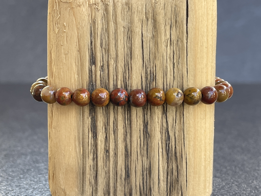 Náramek z červeného achátu mechového dodává citovou, tělesnou a rozumovou rovnováhu. Podporuje sebedůvěru a napomáhá sebepoznání.