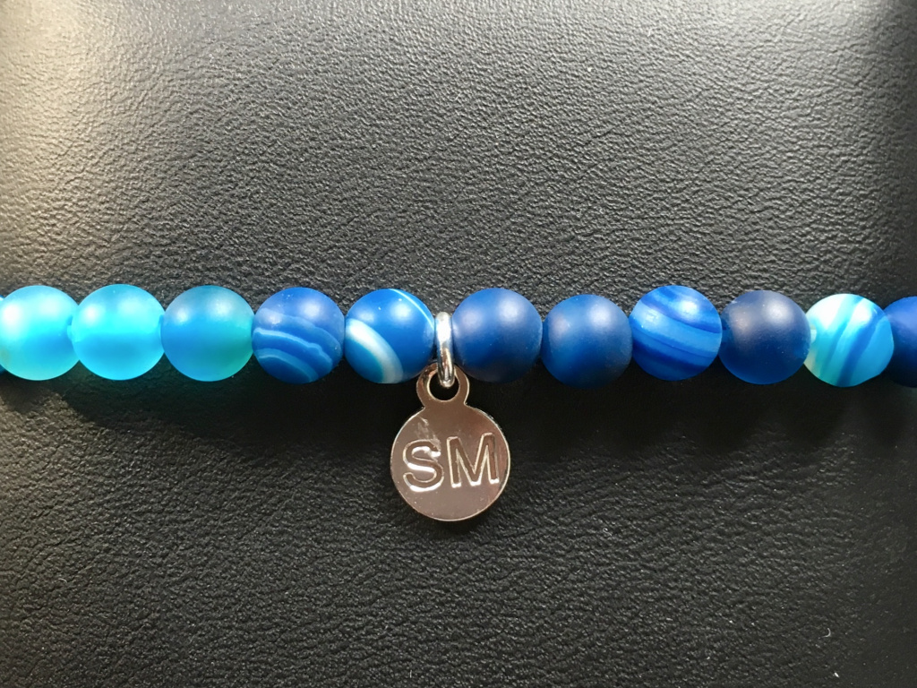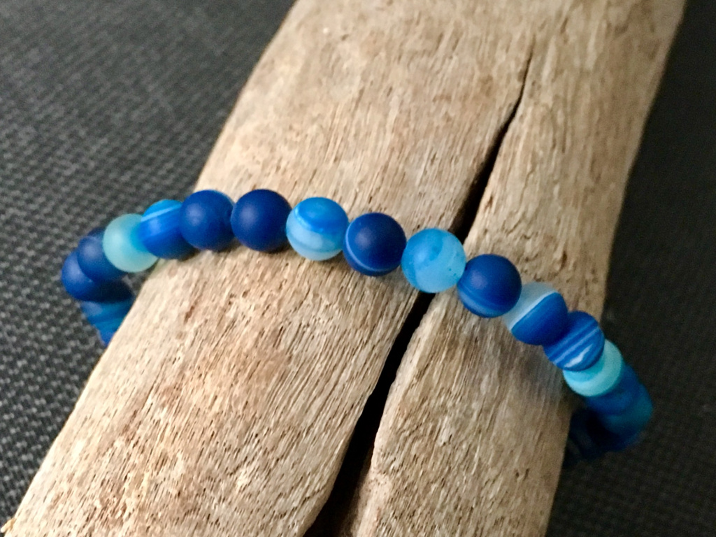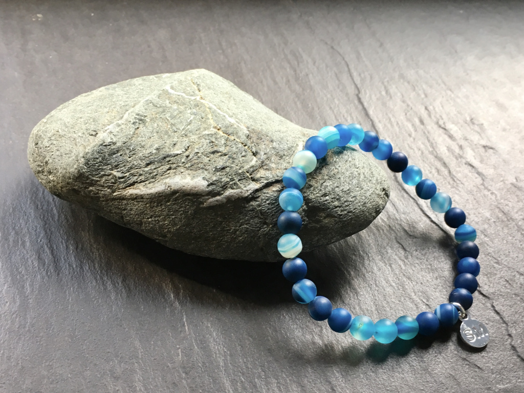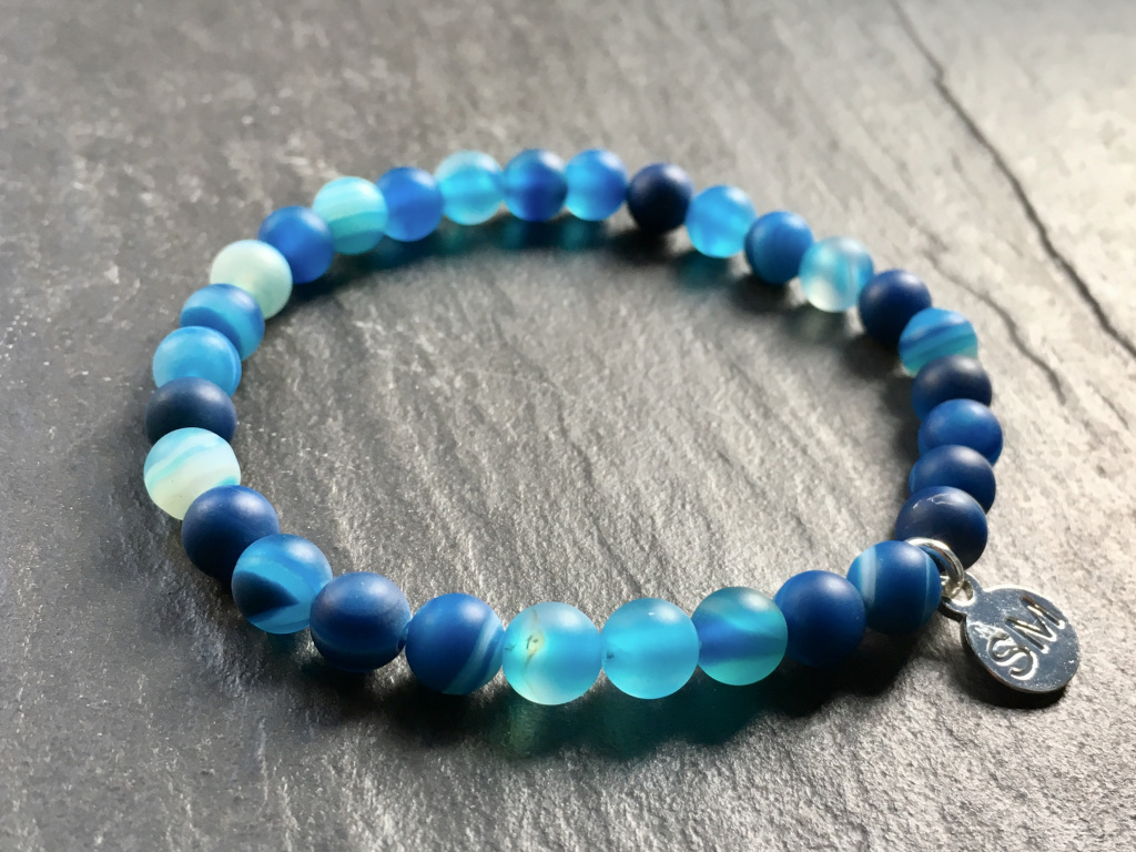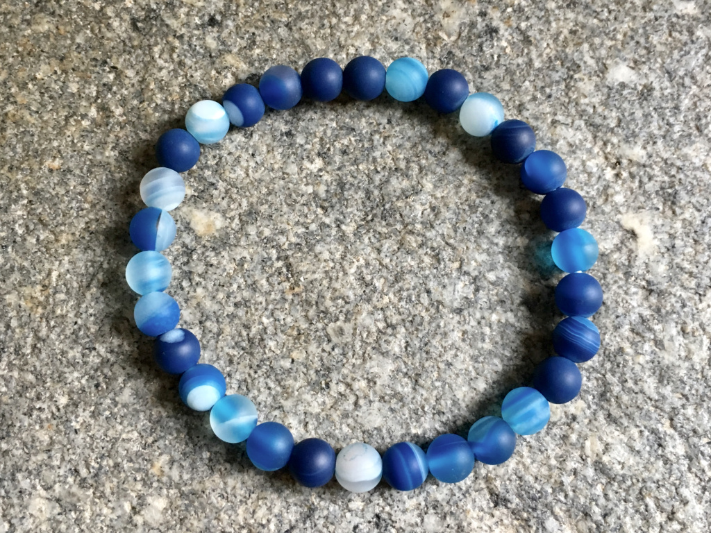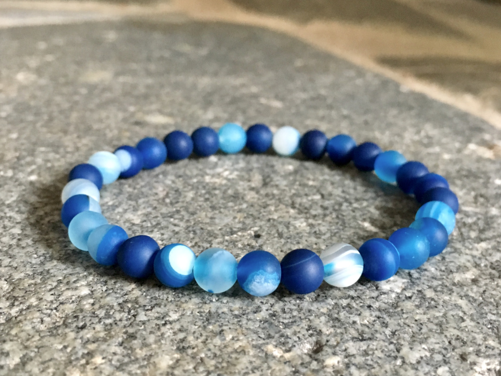 Achát modrý mat náramek - kulička 6 mm