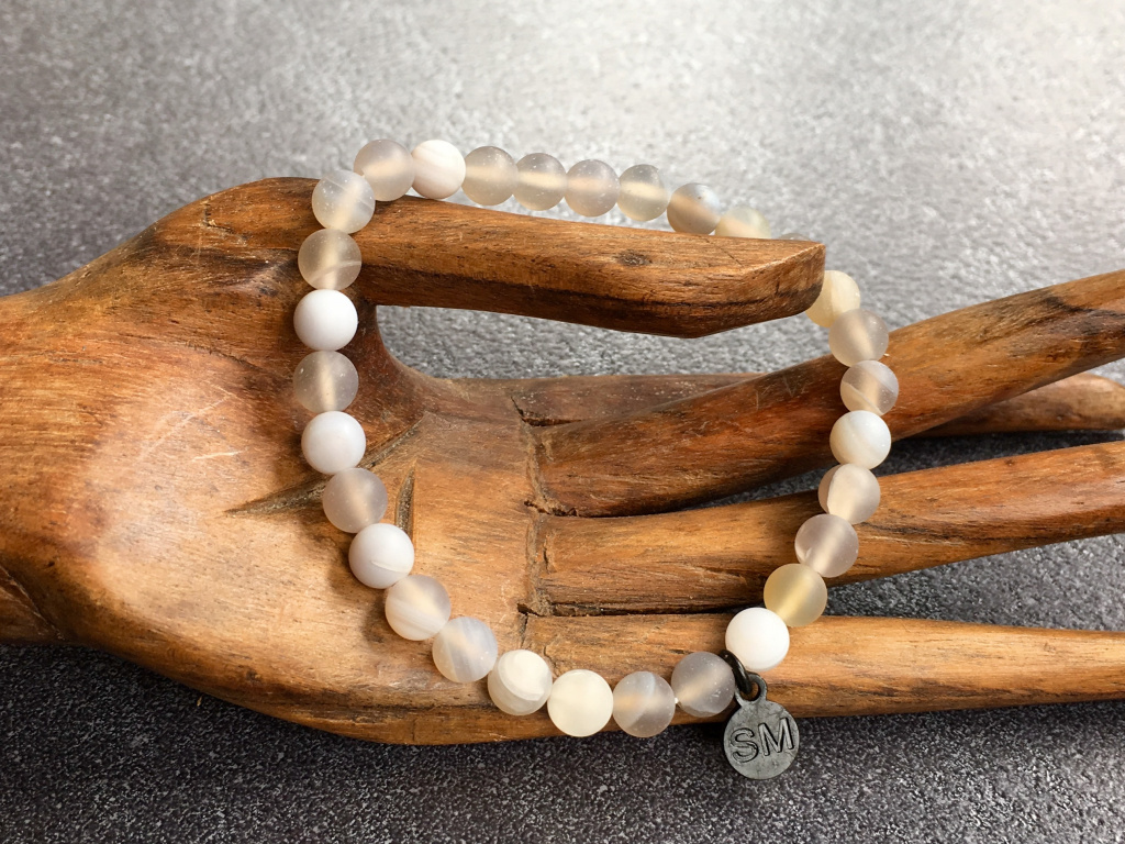 Achát šedý žíhaný mat náramek - kulička 6 mm