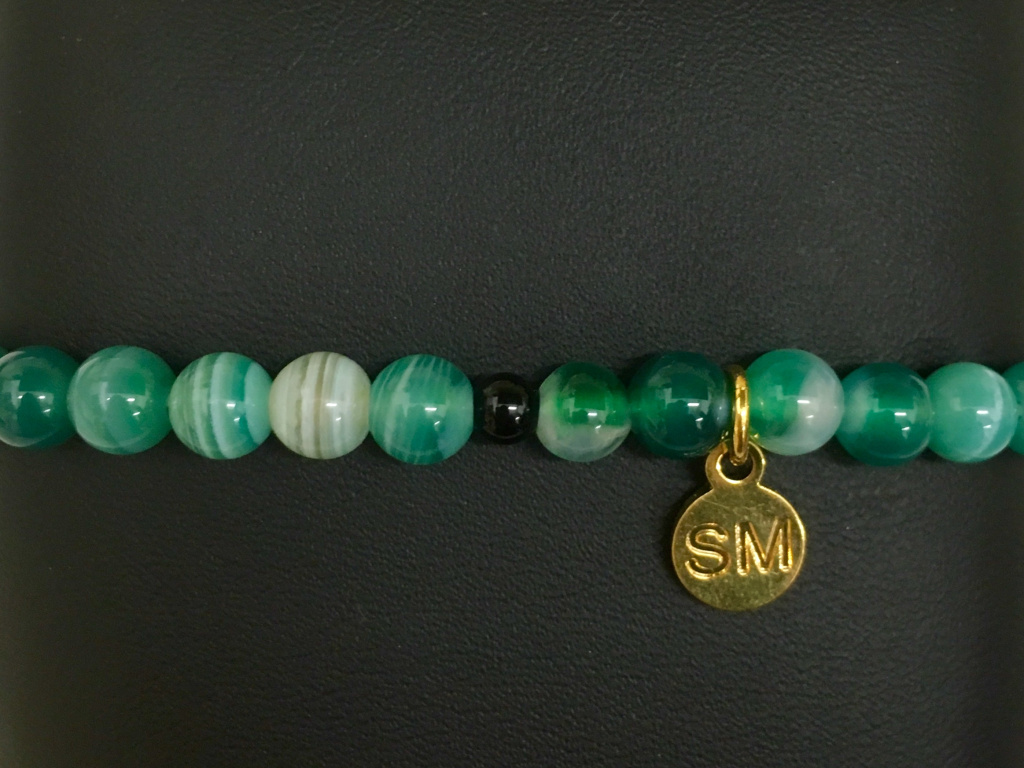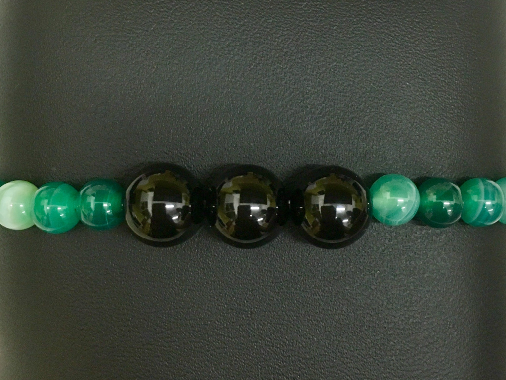 Achát zelený (barvený) s onyxem náramek - kulička 6 mm