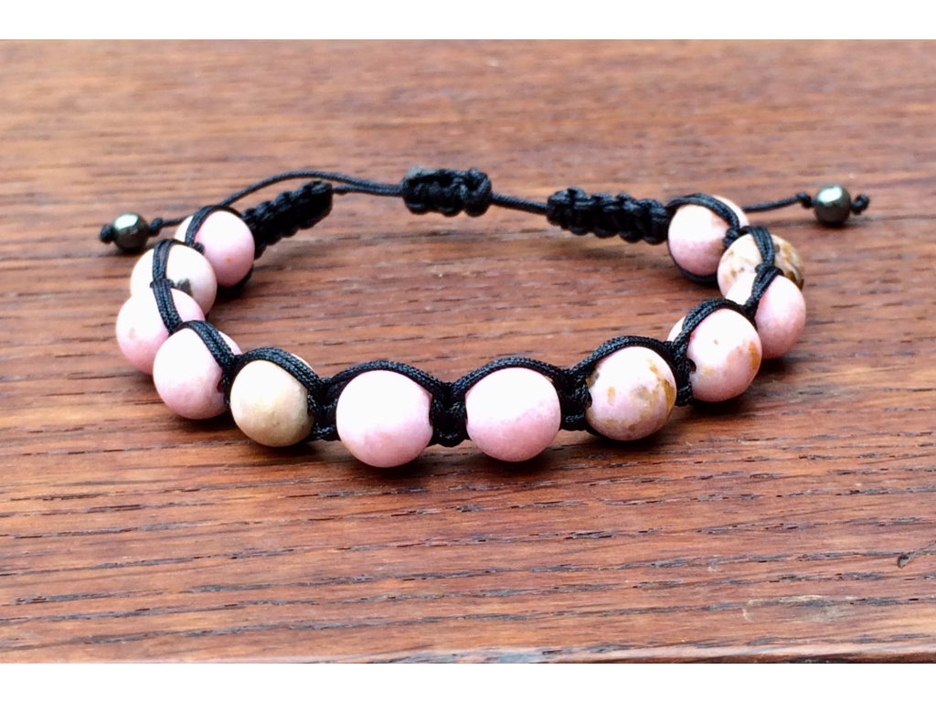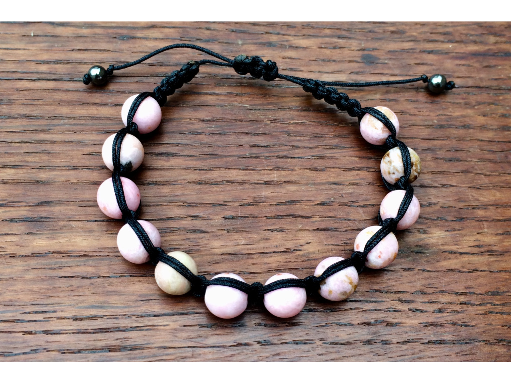 Achát světle růžový náramek - shamballa kulička 8 mm