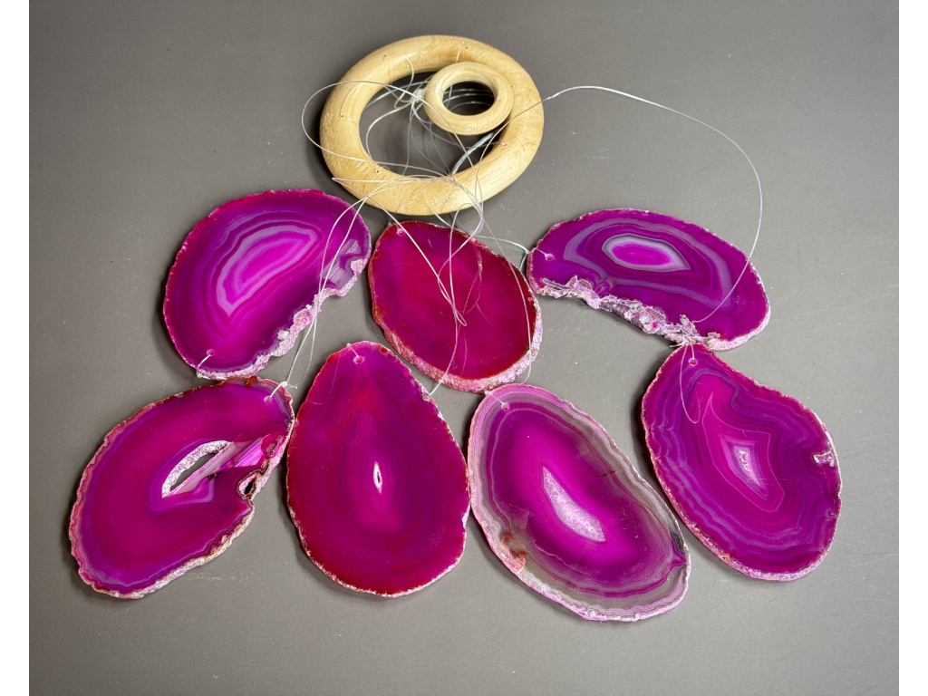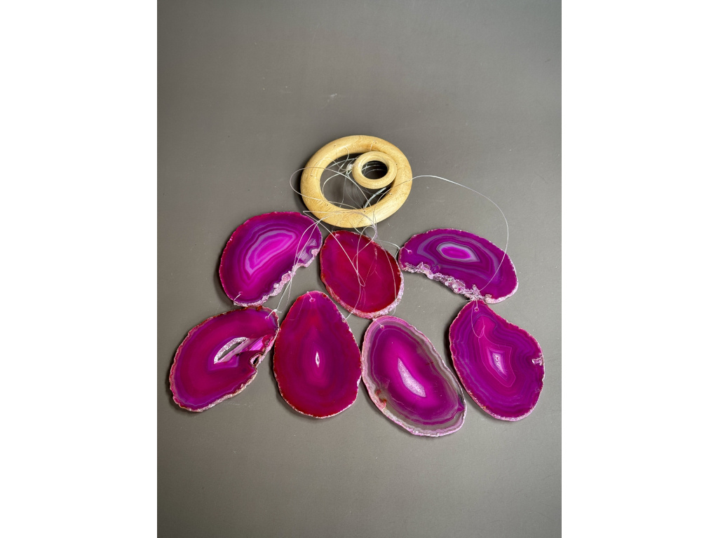 Obklopte se kouzlem a harmonií s touto nádhernou achátovou zvonkohrou, která je dokonalým spojením přírodní krásy a zvukové terapie. Každý achátový plátek byl pečlivě vybrán a zpracován tak, aby vytvářel nejen esteticky přitažlivý, ale i energeticky vyvážený předmět. Nechte se unést jemným cinkáním, které přináší klid do vaší duše a pozitivní vibrace do vašeho prostředí.