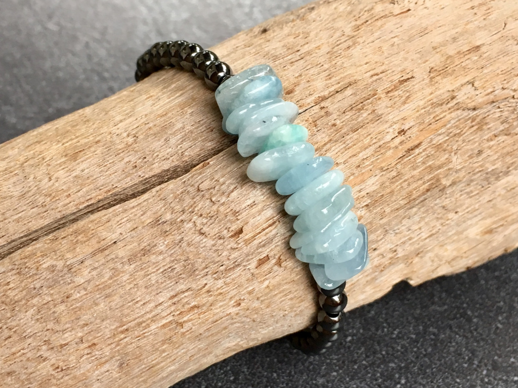 ROZMĚRY: akvamarín cca 8 mm, hematit kulička - 4 mm