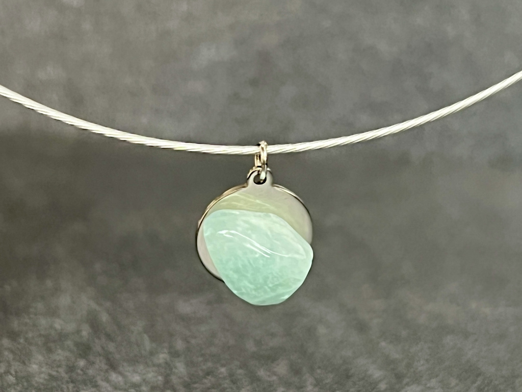 AKVAMARÍNOVÝ NÁHRDELNÍK NA KOVOVÉ OBRUČI