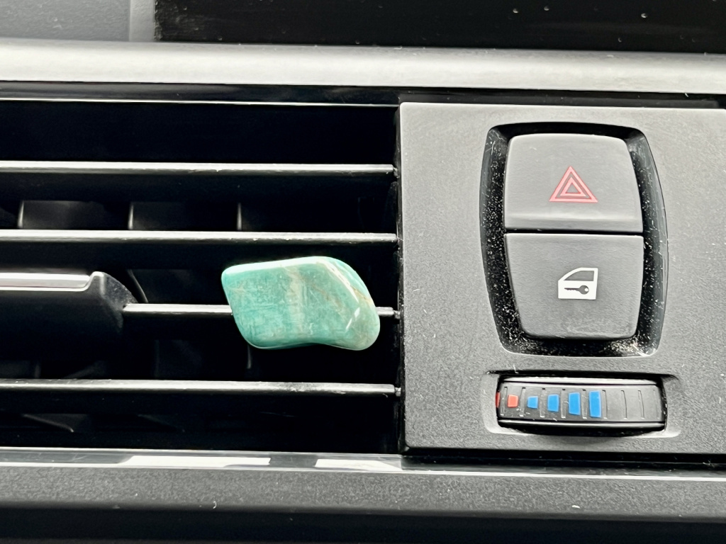 Díky speciálnímu úchytu či klipsu snadno umístíte amazonit přímo do větrací mřížky, kde bude pevně držet, nepřekážet ve výhledu a přitom decentně zjemní a projasní interiér vašeho vozu. Každý pohled na něj připomene klidné soustředění a trpělivost i v náročném provozu.