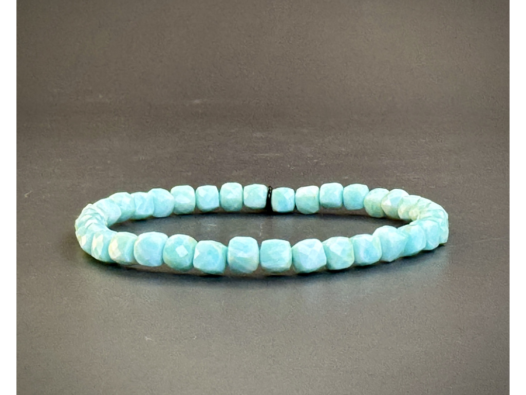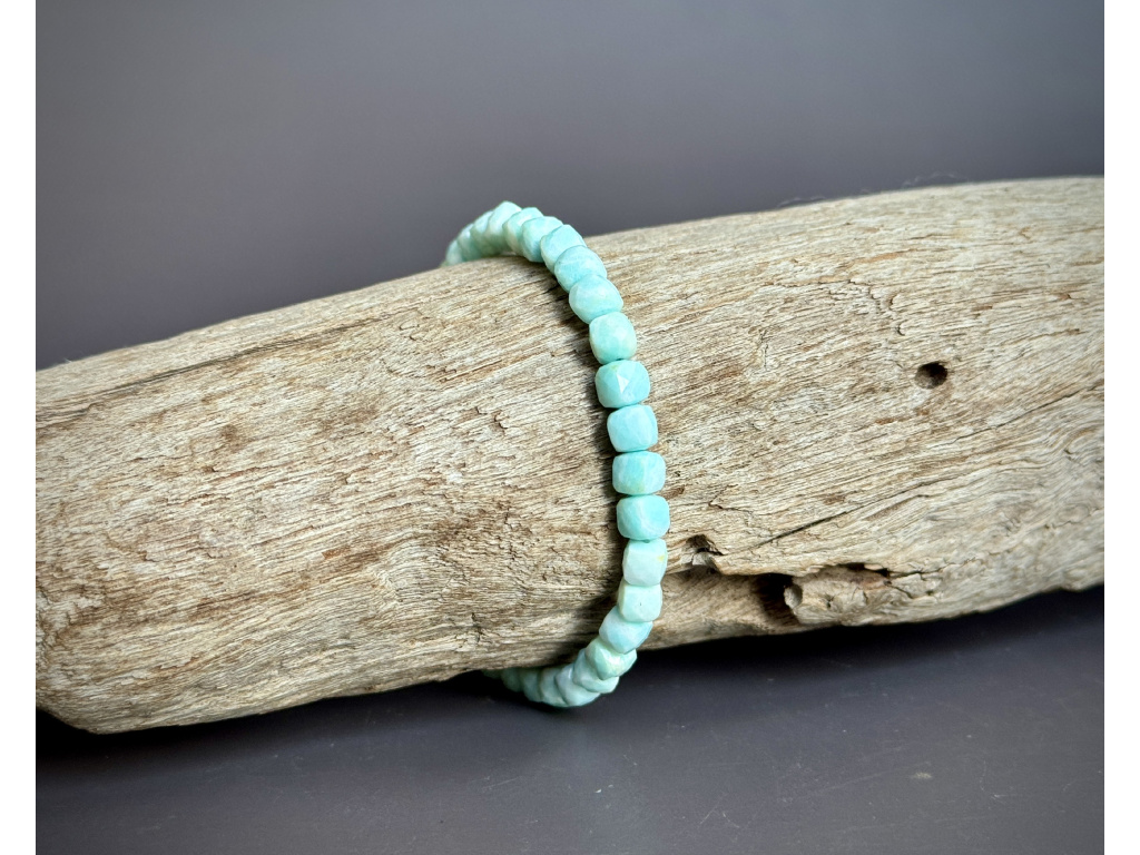 Náramek je vyroben z fasetovaného amazonitu, který v sobě ukrývá obdivuhodnou filtrační schopnost, která pomáhá vyrovnat nejasnosti ve vztahu. Je výjimečný svým zabarvením, které připomíná barvu čistého moře.