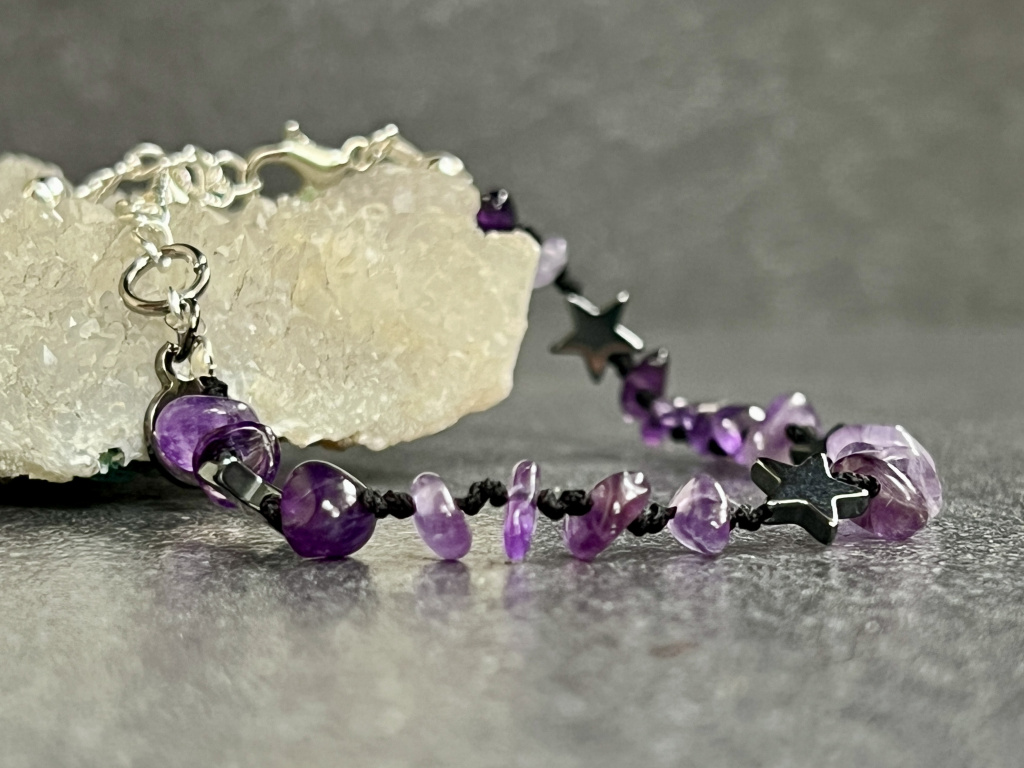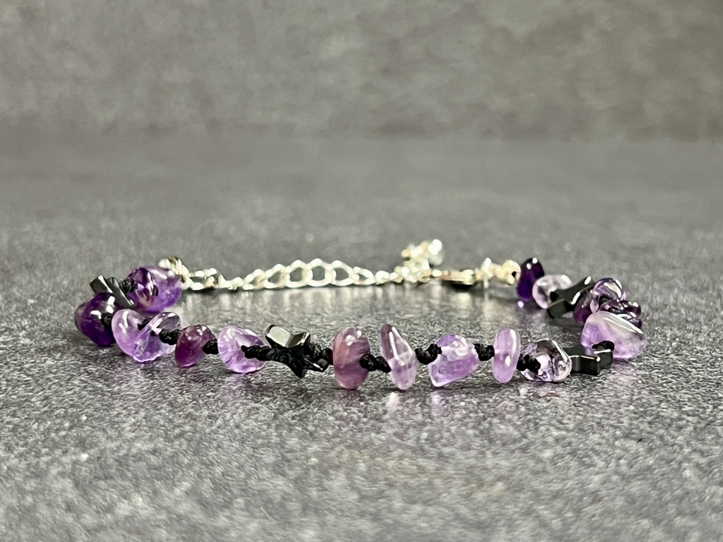 Kotníkový náramek cord OSOBNOST - ametyst, hematit