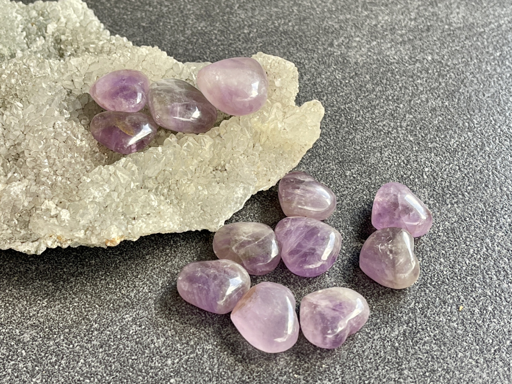 Ametyst harmonizuje krční a korunní čakru, což přispívá k celkovému pocitu pohody. Ať už ho umíte na pracovní stůl, nebo ho držíte v ruce, nechte si unést jeho uklidňující energii a pozitivním vlivem na váš duševní stav.