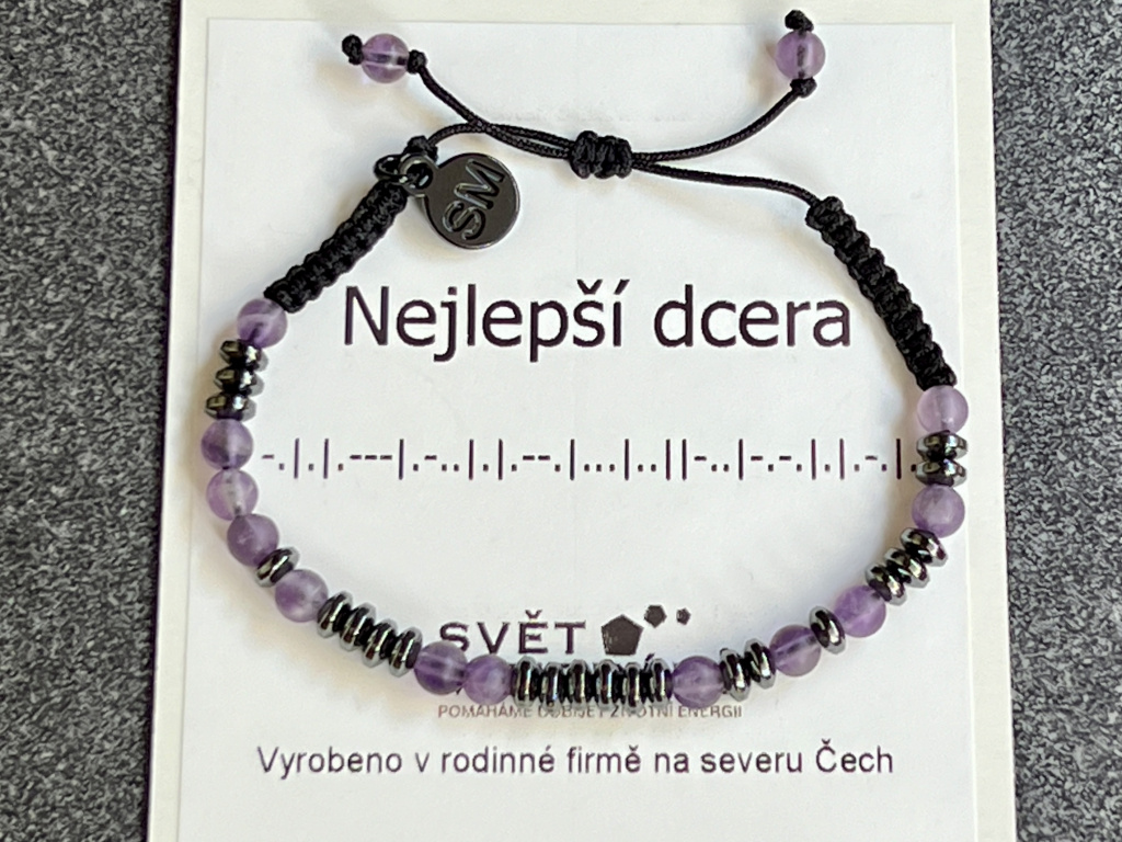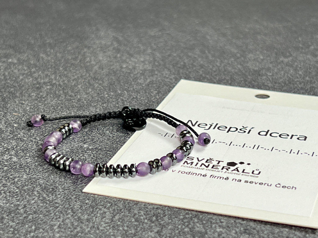 NEJLEPŠÍ DCERA - NÁRAMEK Z AMETYSTU A HEMATITU "MORSEOVKA"