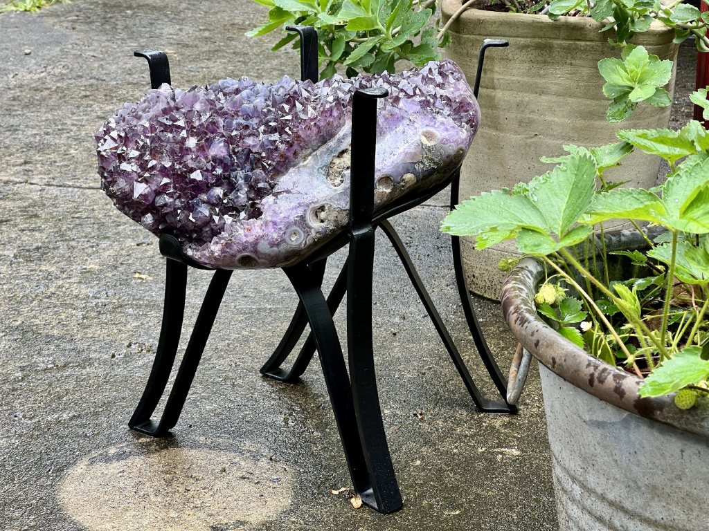 Ametystová drúza na kovovém stojanu je úžasným doplňkem do vašeho interiéru, přidáním skla na kovovou konstrukci, vytvoříte originální konferenční stolek. Tento kámen přináší klid a ochranu. Ametyst je skvělým pomocníkem při soustředění a přijímání nových myšlenek či rozhodnutí. Rozvíjí intuici a podporuje proměnu záměrů ve skutečnost. Posiluje věrnost a lásku a je skvělým doplňkem pro všechny, kteří hledají klid a ochranu ve svém domově. Umístěte drúzu z nejžádanějšího minerálu, který v sobě ukrývá obrouvskou sílu a uvidíte, jak se dostaví pozitivní energie a klid.