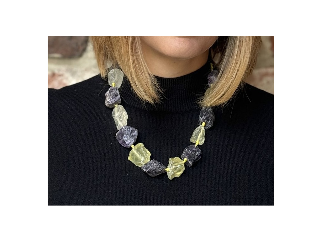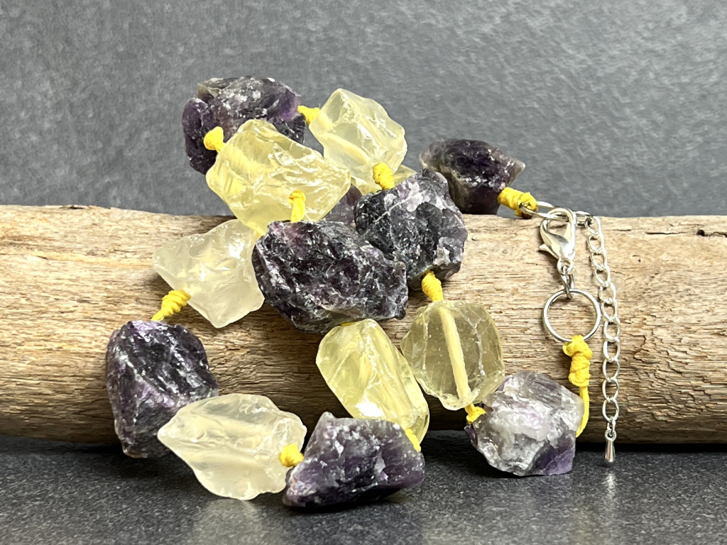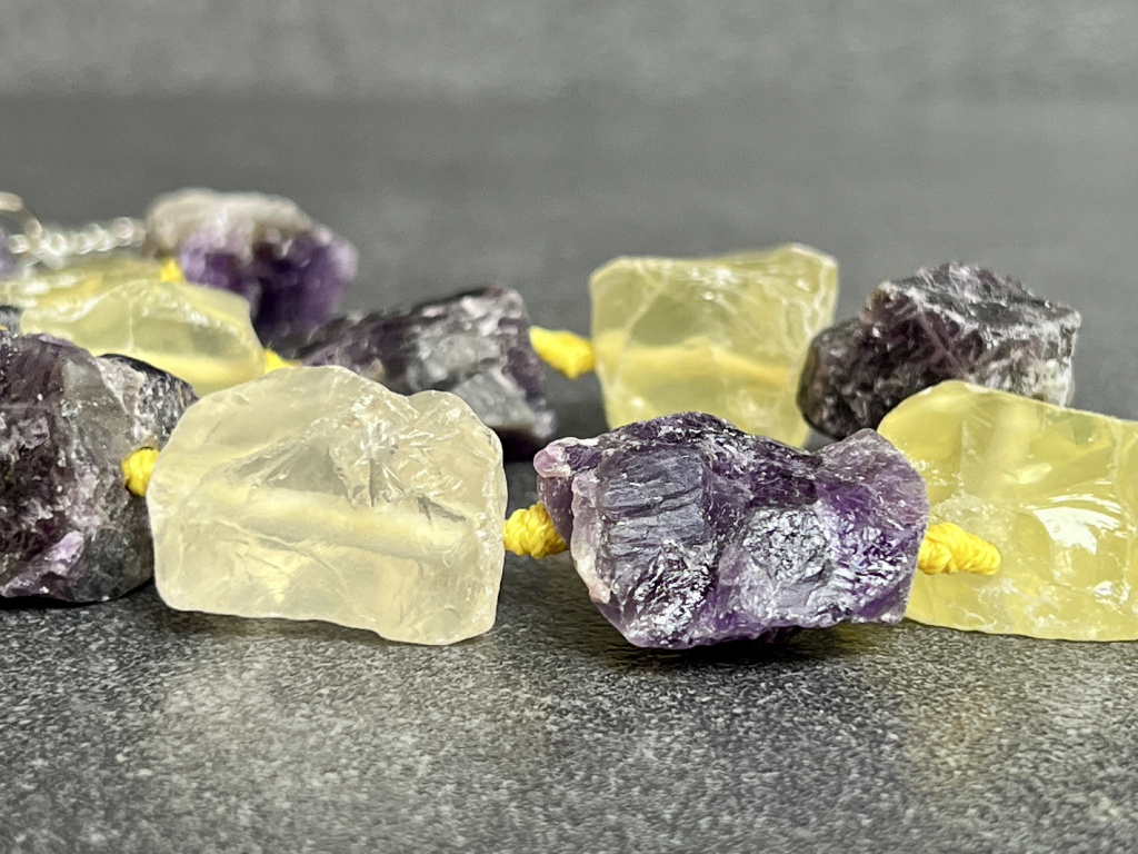 Elegantní náhrdelník vyrobený ze surového ametystu a křemenu lemon podpoří vaše uvědomění ve všech souvislostech, pomůže dosáhnout lásky, nabije vás silnou energií a ochrání proti negativních vlivům z okolí. V oblasti zdraví působí velmi kladně na všechna onemocnění a zmírňuje bolesti hlavy.