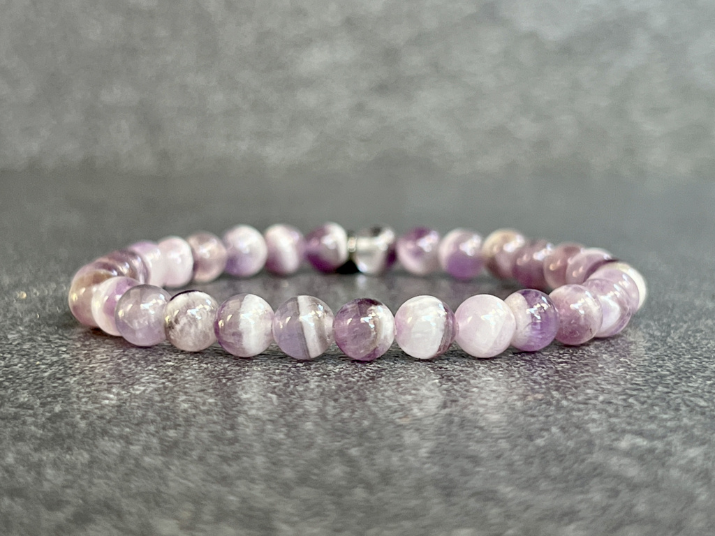 Krásně zbarvený náramek z ametystu chevron v sobě ukrývá obrovskou sílu plnou lásky, klidu a ochrany.