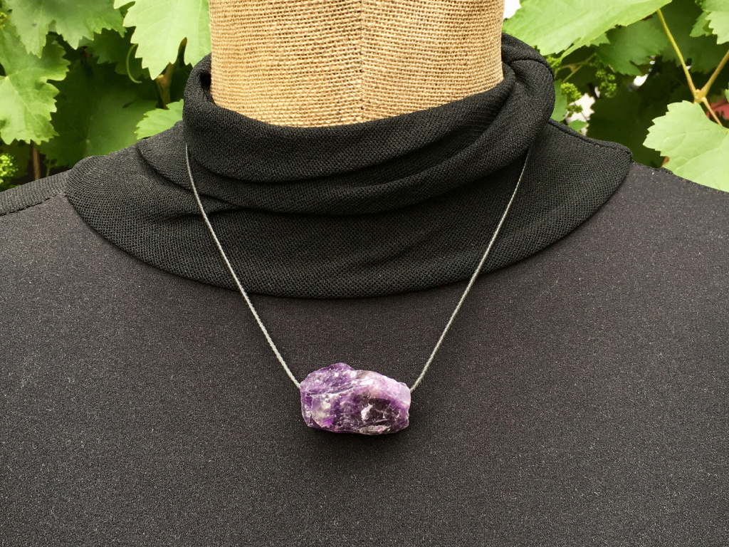 Působivý náhrdelník ze surového ametystu dodá svému majiteli obrovskou sílu a energii ve všech směrech. Ručně vyrobeno na severu Čech.
