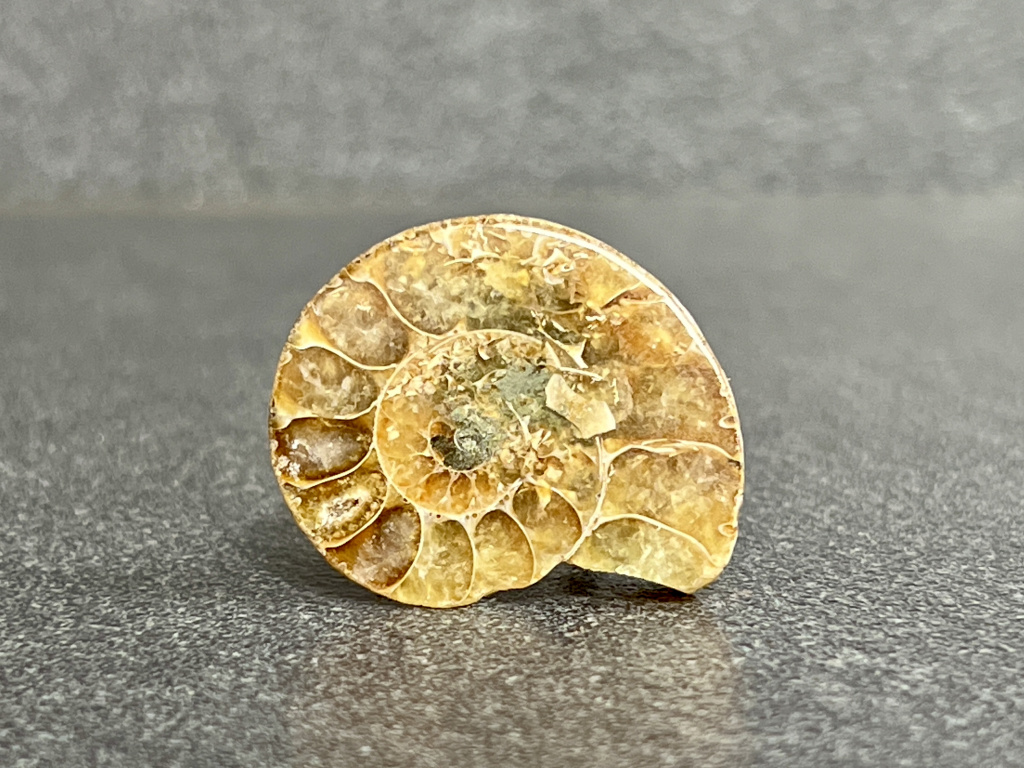 - Materiál: přírodní zkamenělý amonit, pečlivě leštěný pro zvýraznění komůrek