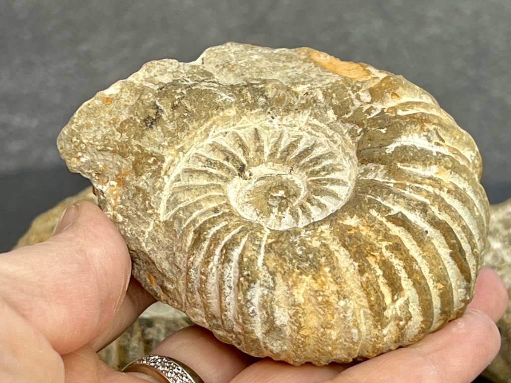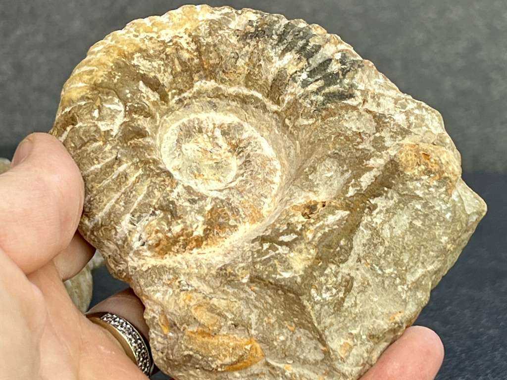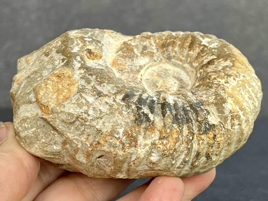 Každý surový amonit je jediný svého druhu. Na rozdíl od leštěných exemplářů je jeho povrch často zdrsnělý, organicky tvarovaný a místy pokrytý stopami po minerálech či usazeninách. I tak však jasně rozpoznáte typickou spirálu, která fascinuje přírodní jednoduchostí i působivostí fosilního designu.