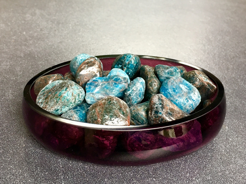 Tromlovaný kámen z apatitu v nižší B kvalitě, přináší intelekt a tvořivost. Podporuje sebevědomí, otevřenost a kontakt s ostatními lidmi.