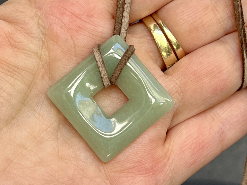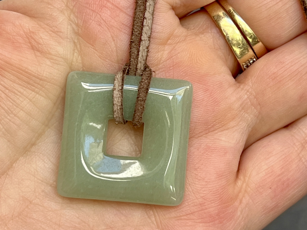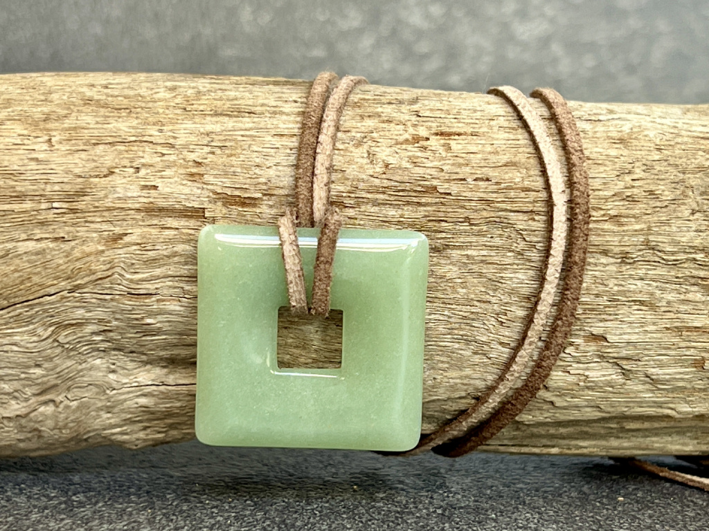 Avanturín zelený přívěsek - donut čtverec - 2,8 x 2,8 cm