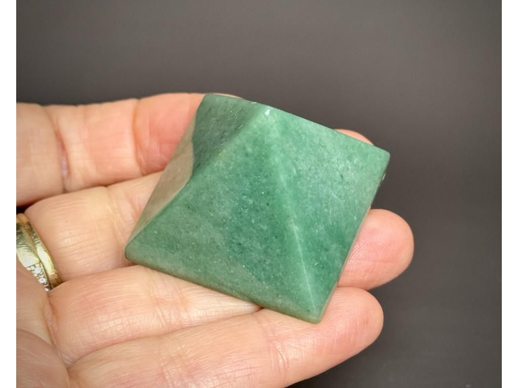 - Přírodní zelený avanturín, precizně broušený a leštěný do pyramidy.