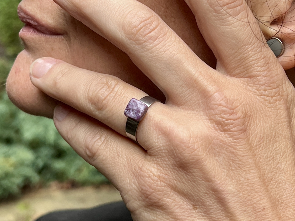 Objevte kouzlo čaroitu v tomto jedinečném prstenu, který není jen obyčejným šperkem, ale mocným spojencem na vaší cestě za vnitřní harmonií a klidem. Tento prsten, jehož srdcem je nádherný kámen v odstínech fialové, je navržen tak, aby nejen zdobil vaše tělo, ale především obohatil vaši duši.