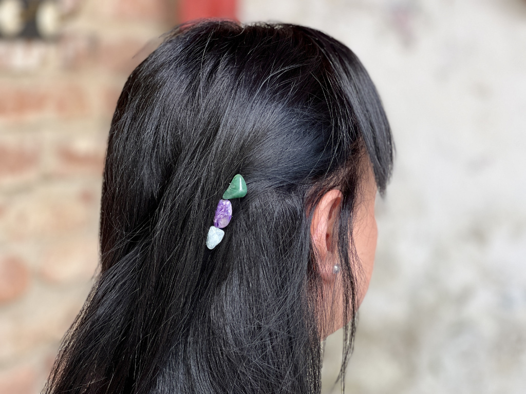 Sponka do vlasů ozdobená kamenem dodá vašemu účesu originální vzhled. Každá sponka je ozdobena pečlivě vybraným minerálem, jehož krásná barva a specifické vlastnosti přinesou do vašeho života kousek přírodní krásy a energie.