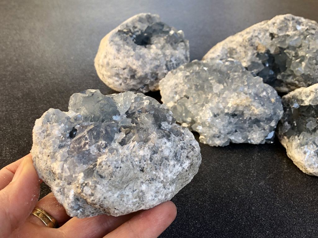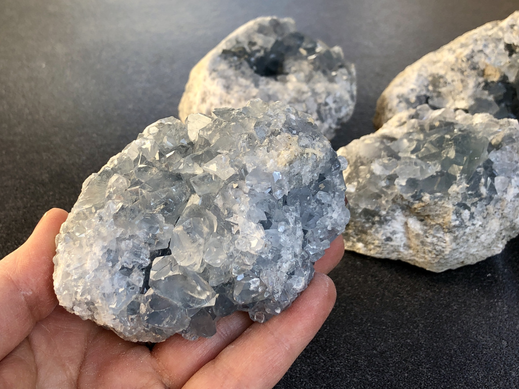 Celestinová drúza je dekorace s účinkem — umístěte ji na místo, kde chcete cítit klid, pohodu a novou inspiraci. Hodí se domů, do pracovny i do meditačního koutku všude tam, kde potřebujete pohodu, čistotu myšlenek a úsměv na duši.