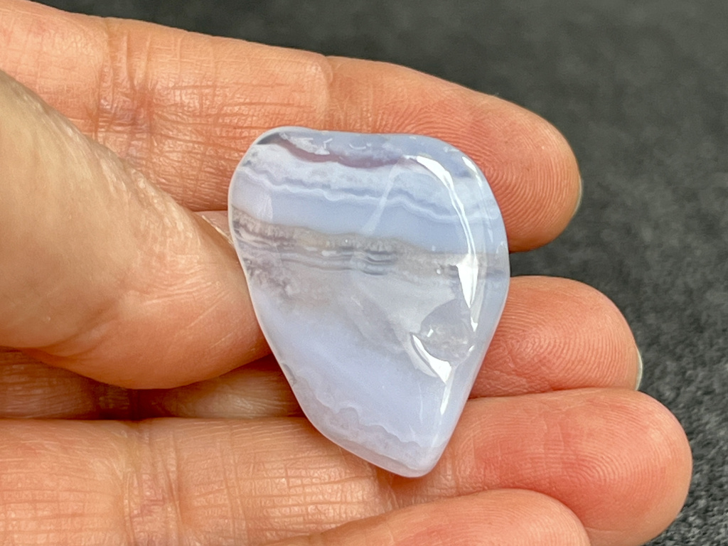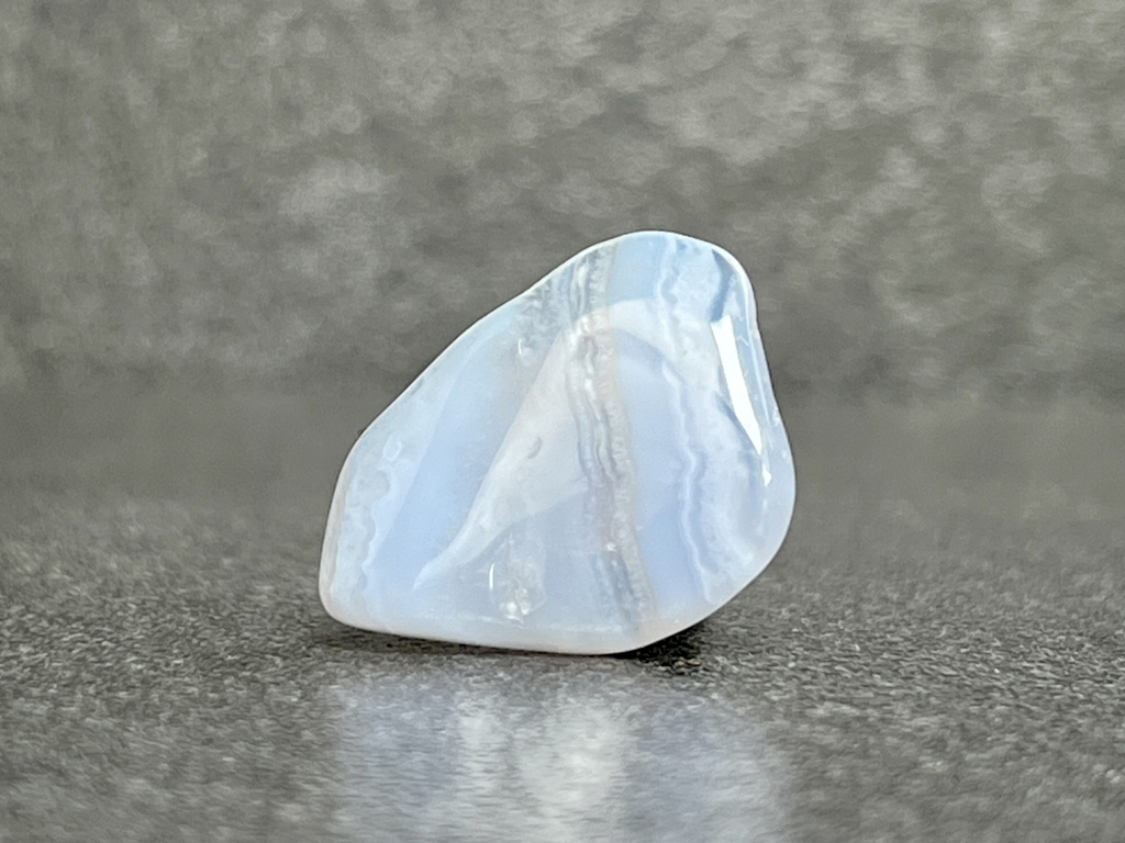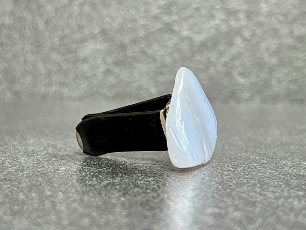 Chalcedon je mikrokrystalická odrůda křemene, známá svými hladkými pastelovými odstíny – často mléčně modrými či světle šedými. Tradičně je spojován s klidem, trpělivostí a vyrovnanou komunikací. Jeho měkké tónování vizuálně zklidňuje a pomáhá držet plynulý rytmus jízdy bez zbytečného napětí.