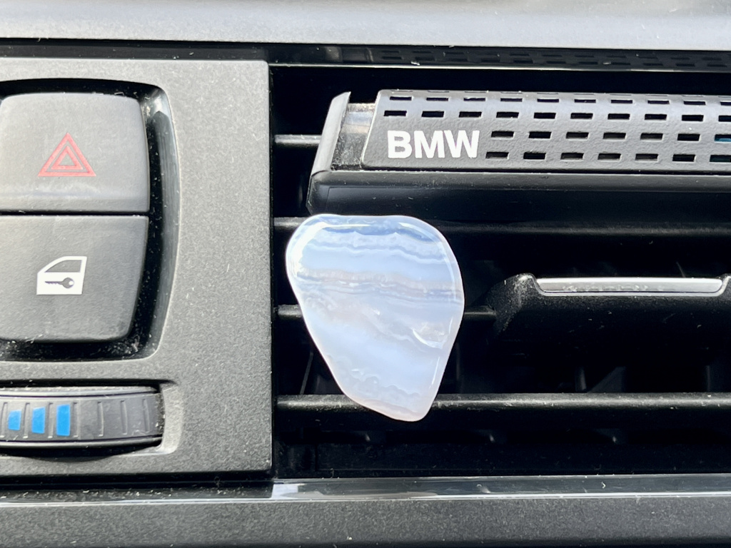 Díky speciálnímu úchytu či klipsu snadno umístíte chalcedon přímo do větrací mřížky, kde bude pevně držet, nepřekážet ve výhledu a zároveň decentně zjemní vzhled interiéru. Při každém pohledu nabídne vizuální „pauzu“ a navede pozornost zpět k pohodě a rozvaze i v náročném provozu.