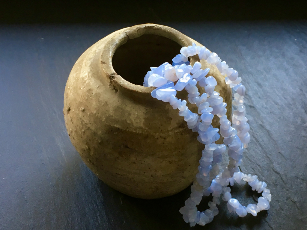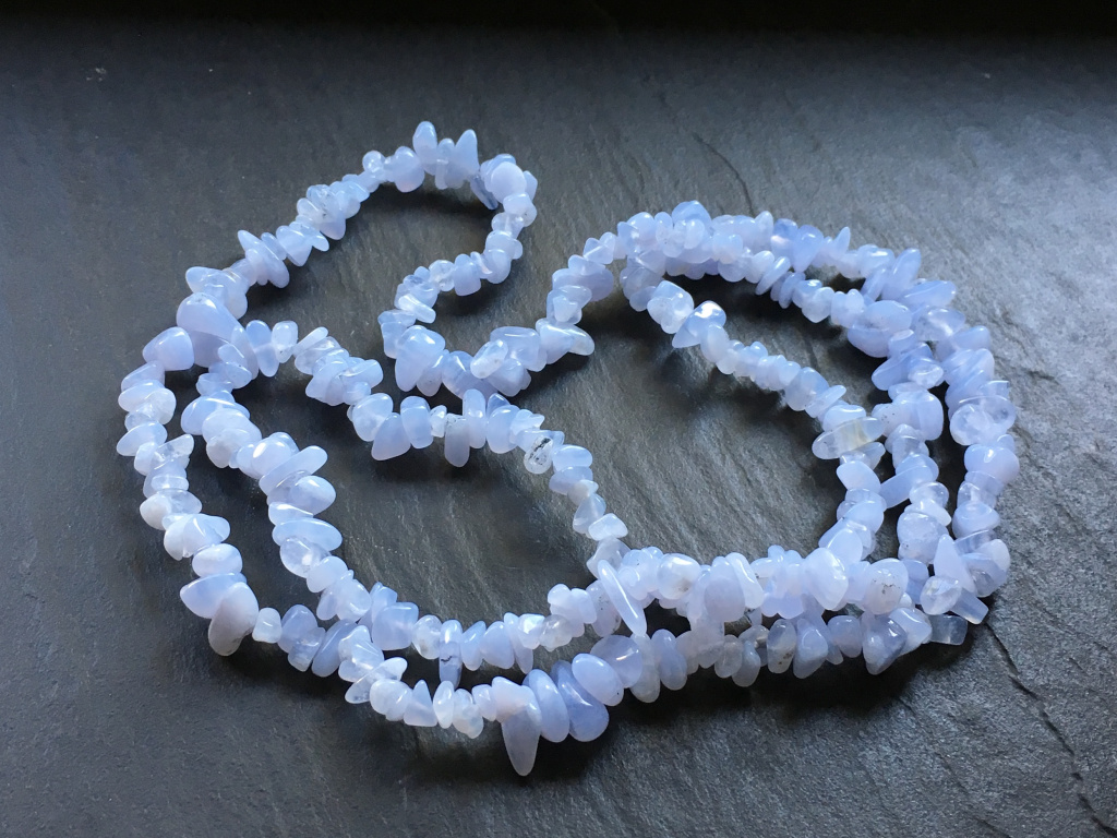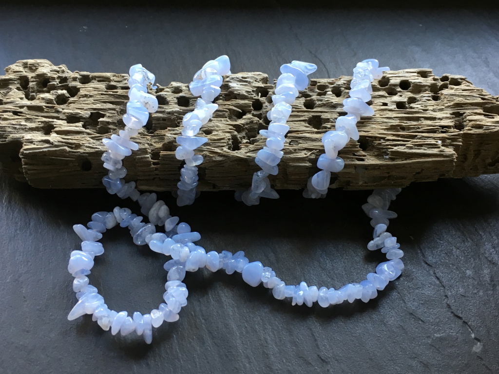 Náhrdelník vyrobený ze sekaného chalcedonu pomáhá z našeho těla vyhnat strach, deprese a smutek. Je přiřazen Měsíci a elementu vody.