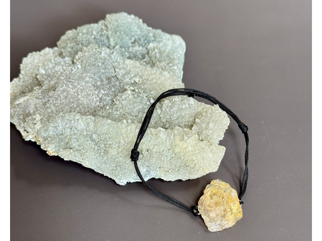 | Materiál: | surový kámen citrín, pevný nylonový provázek, ocel |
