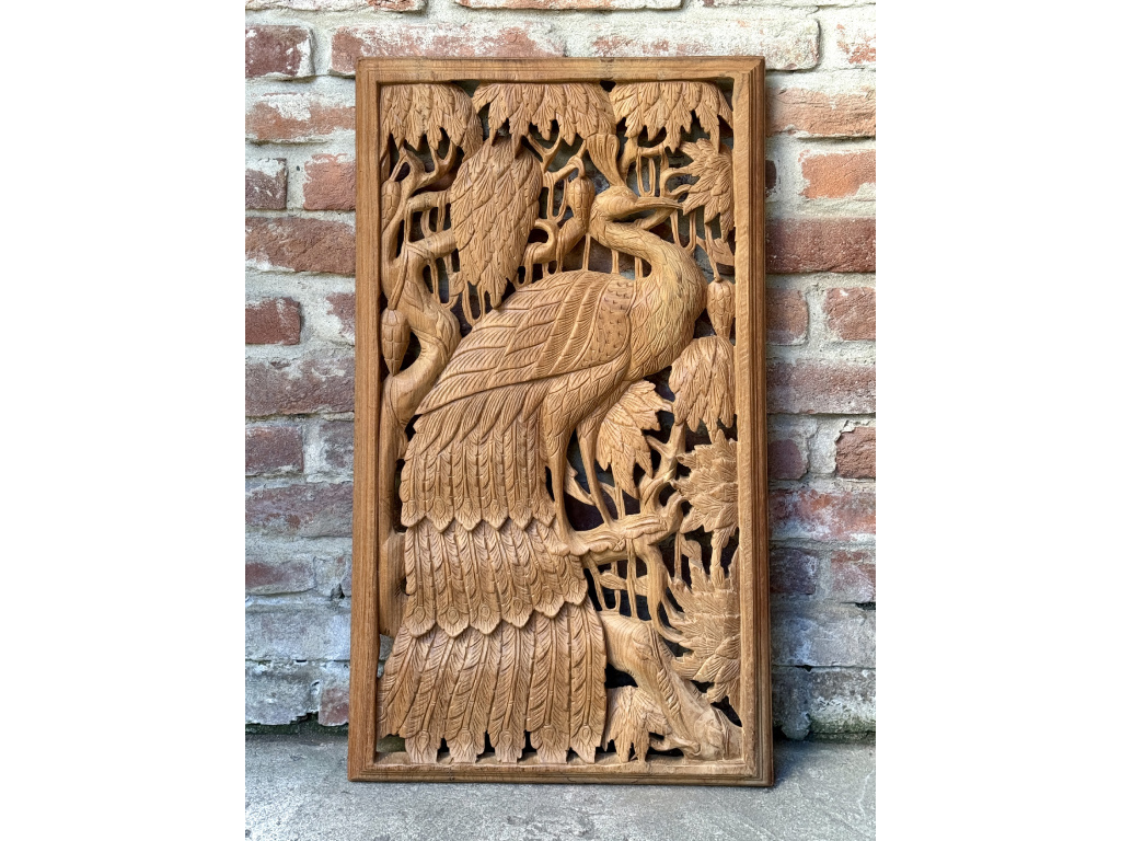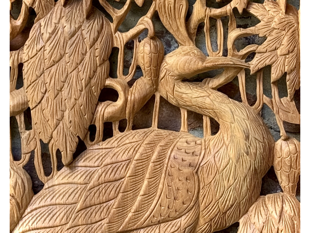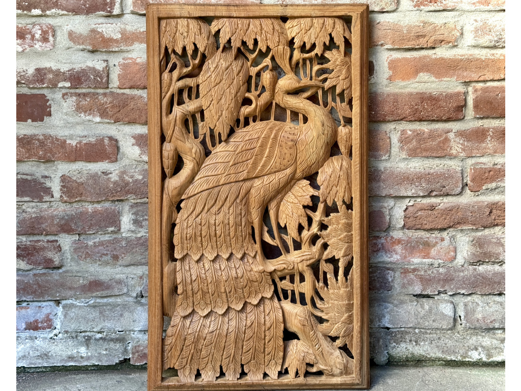 Dřevořezba "PÁV" - Thajsko - 90 x 51 cm