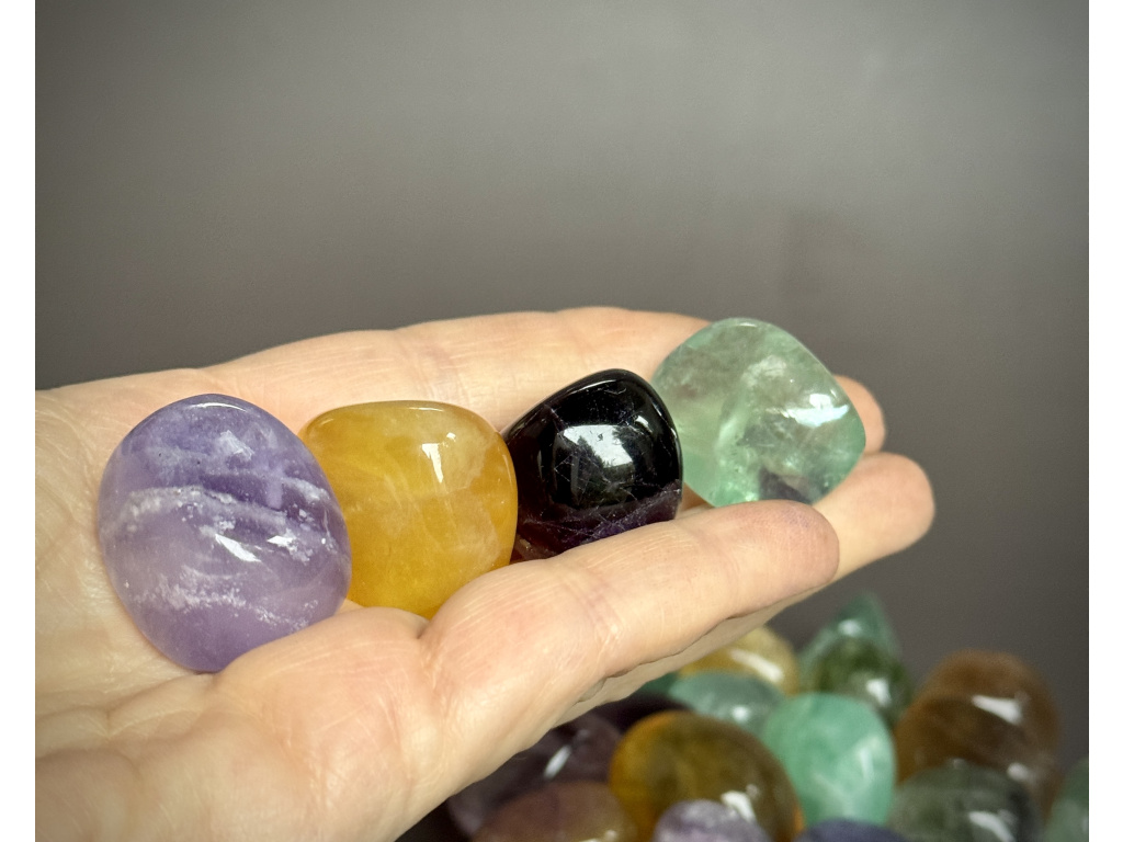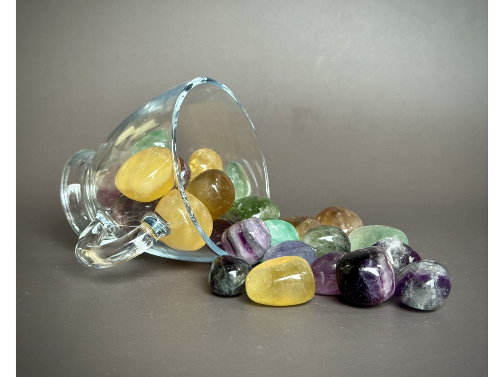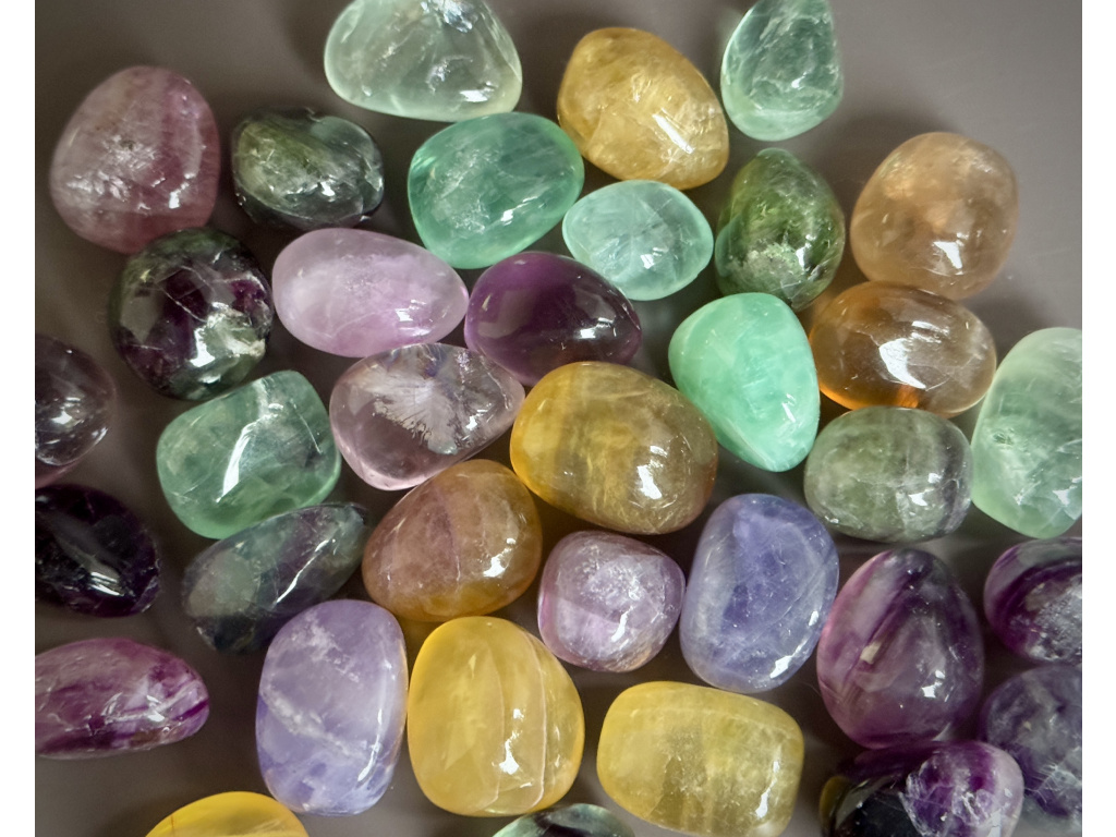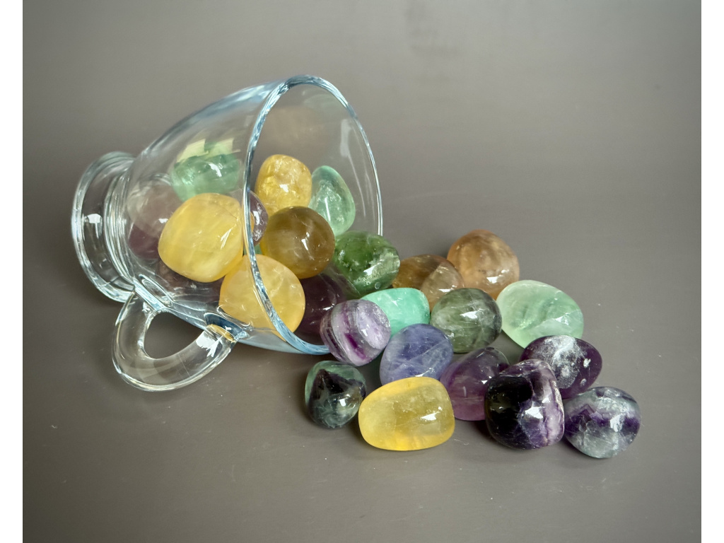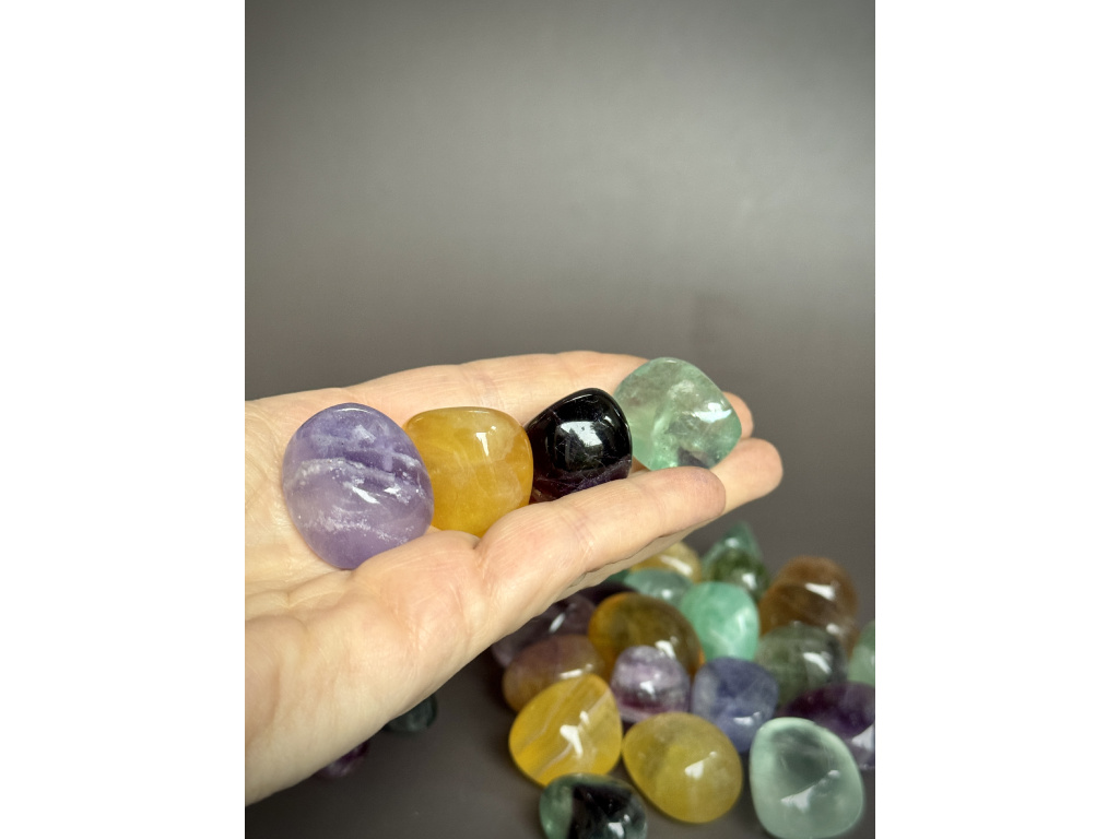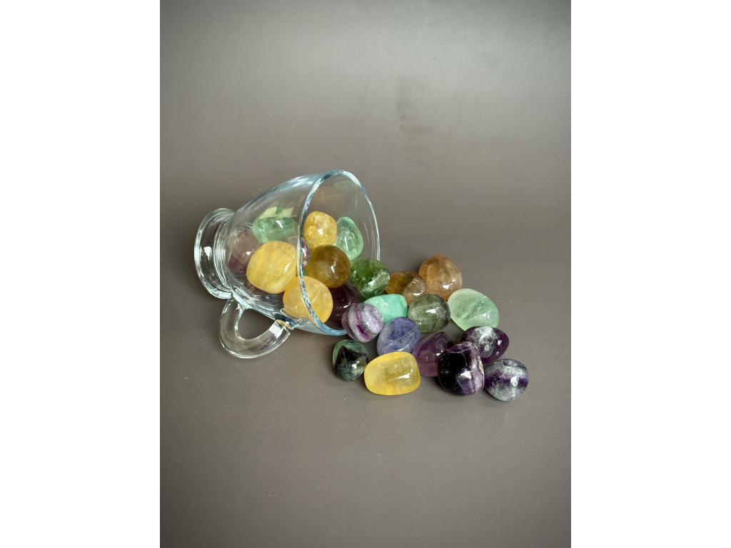 Barevný fluorit je kamenem jasnosti, rovnováhy a ochrany mysli. Jeho duhové odstíny – od fialové přes zelenou až po žlutou – symbolizují spojení rozumu, srdce a ducha. Pomáhá zklidnit myšlenky, uspořádat emoce a nalézt vnitřní harmonii i při náročných životních výzvách.