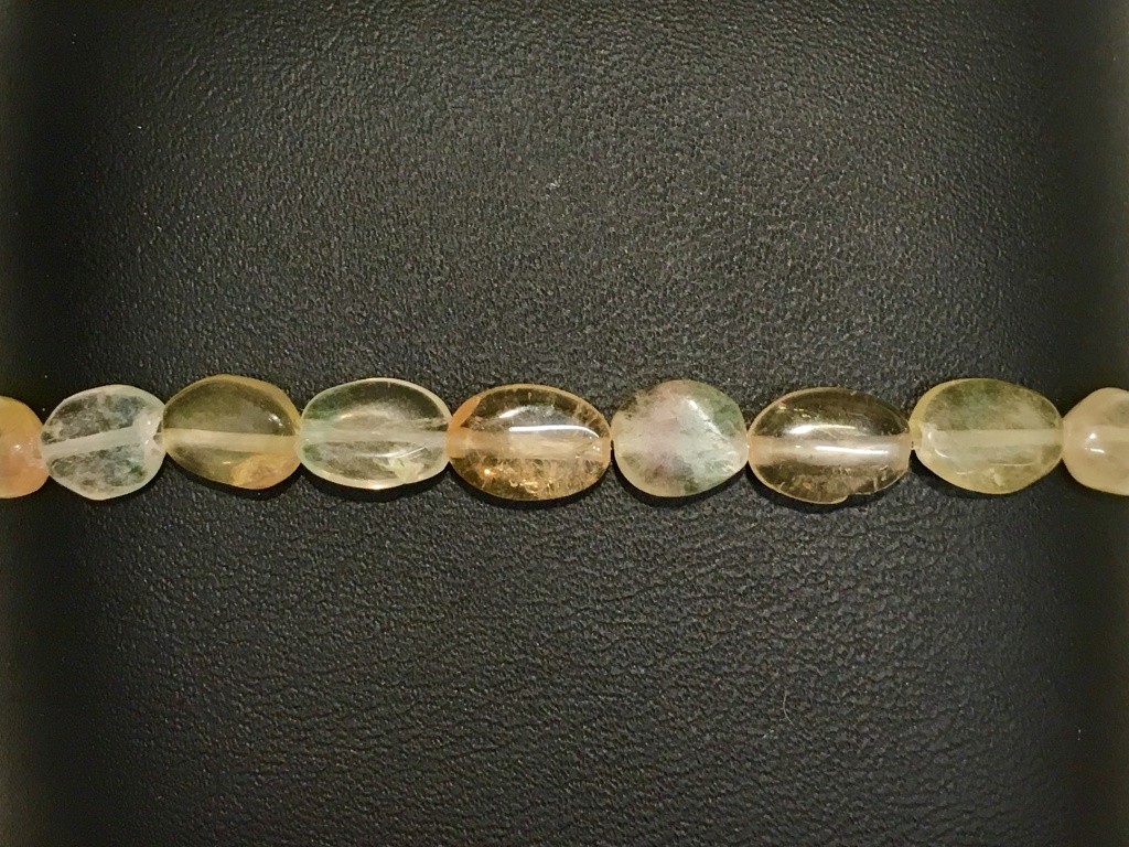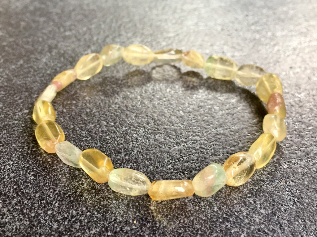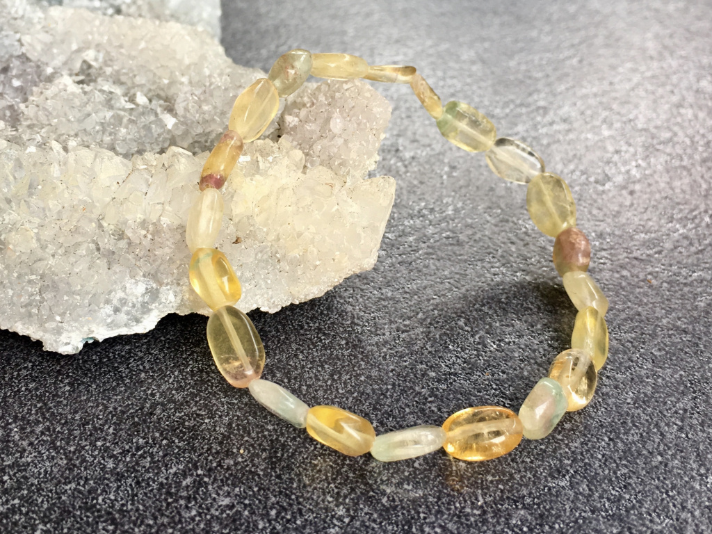 Ručně vyrobený náramek ze žlutého fluoritu ve tvaru oválků je obdařený silnou ochrannou mocí, zejména na duševní úrovni.
