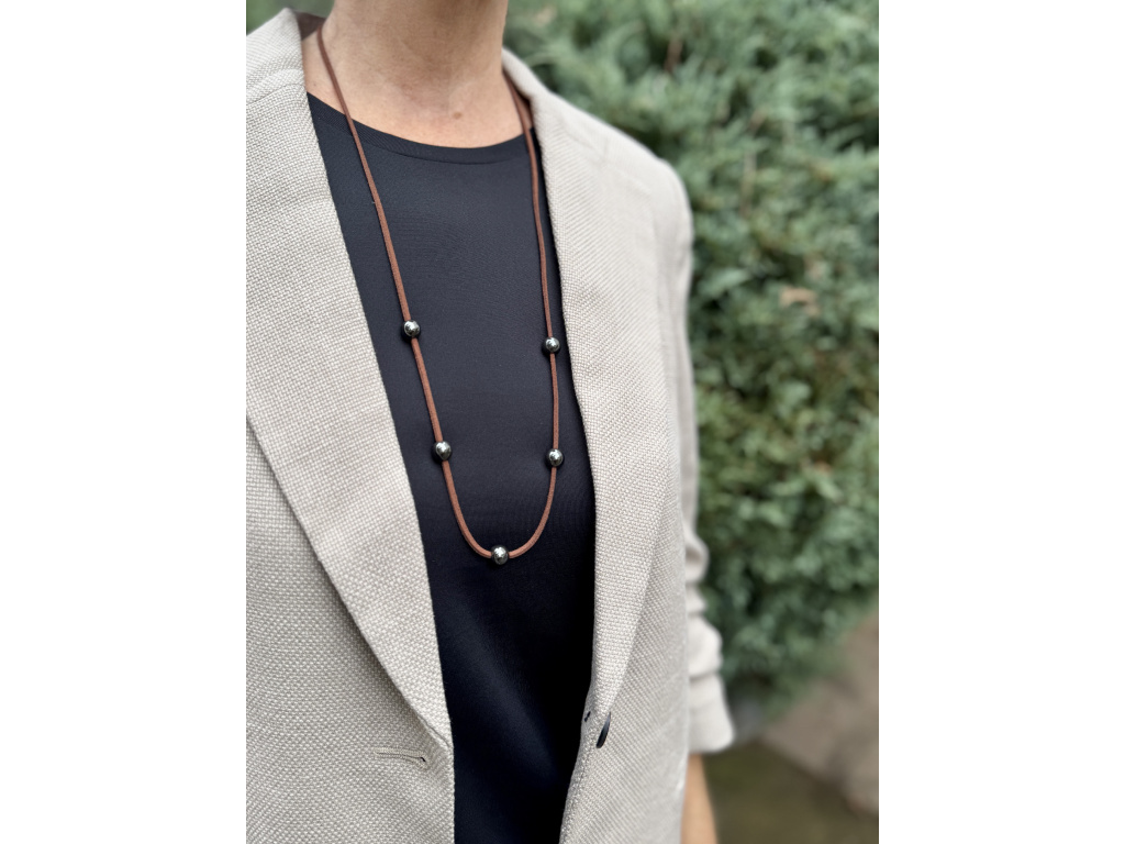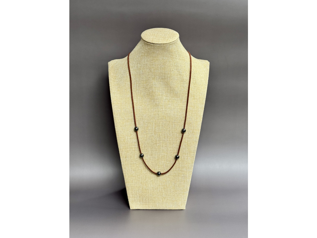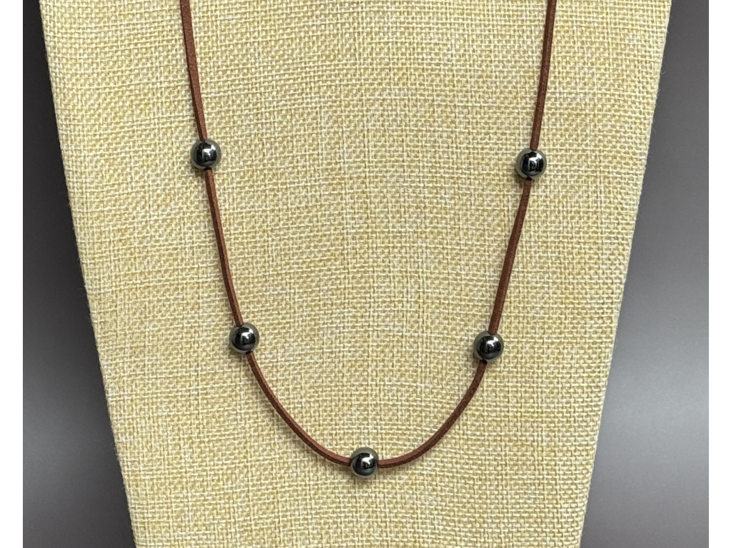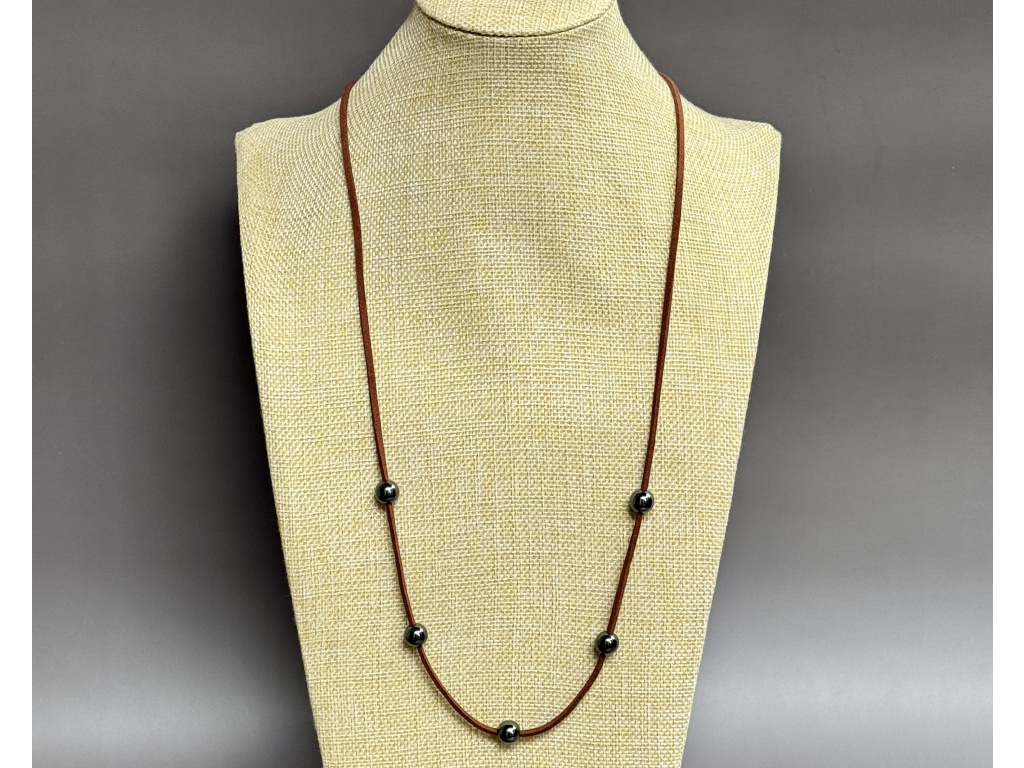 HEMATITOVÝ NÁHRDELNÍK NA EKOKŮŽI - BARVA HNĚDÁ