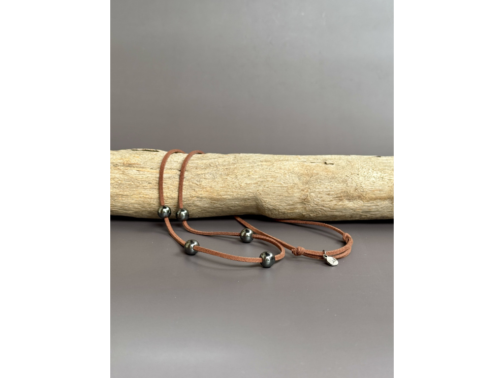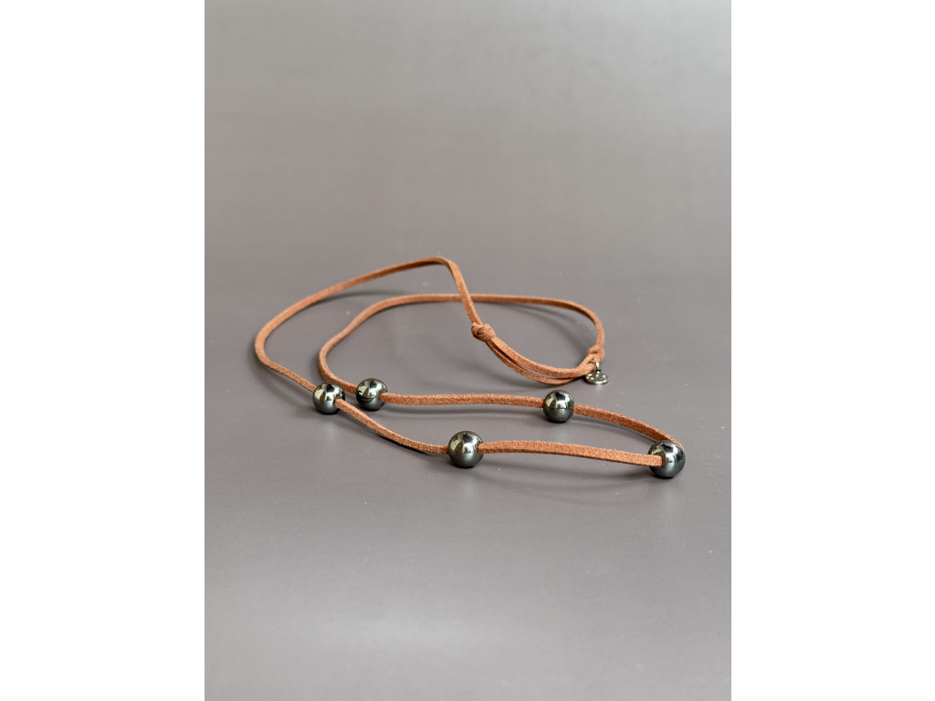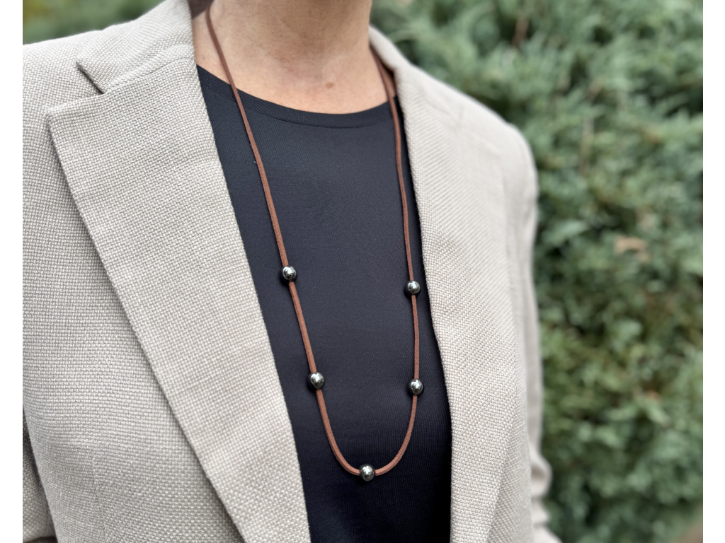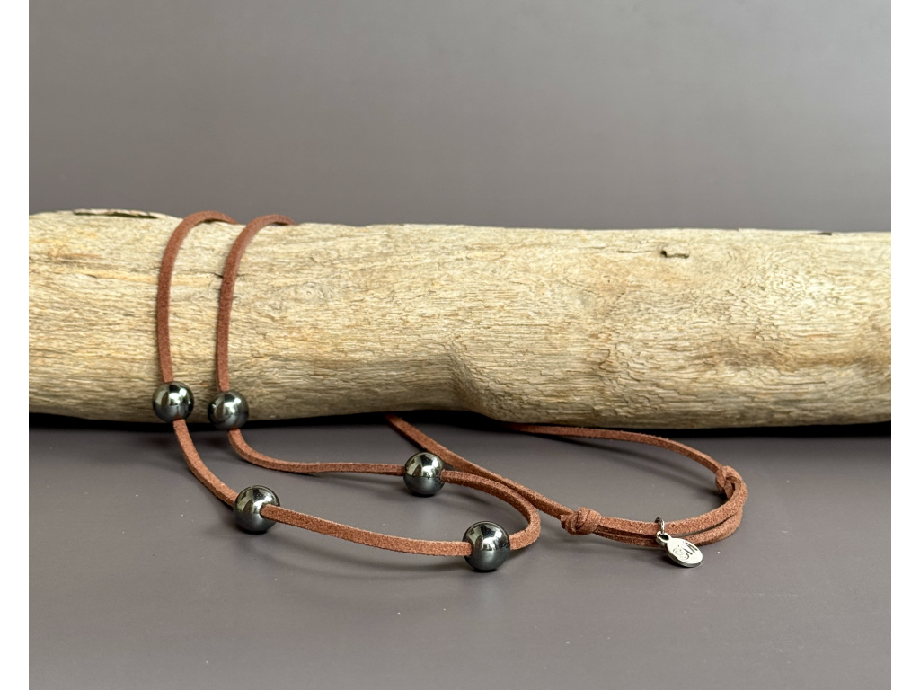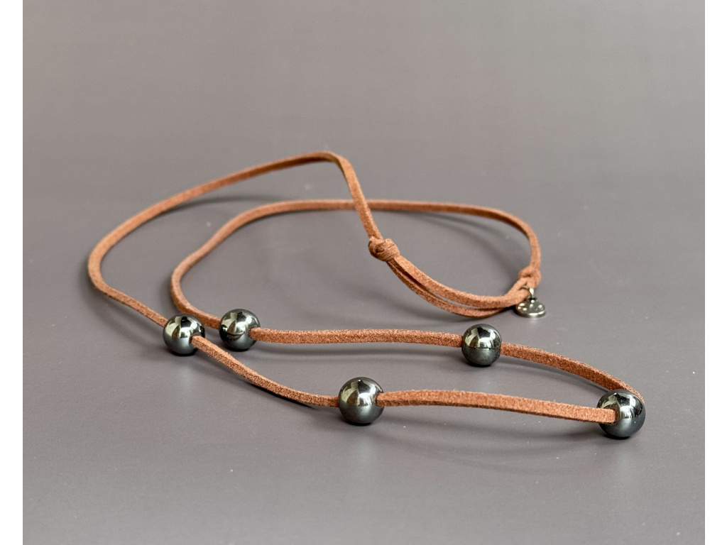 HEMATITOVÝ NÁHRDELNÍK NA EKOKŮŽI - BARVA HNĚDÁ