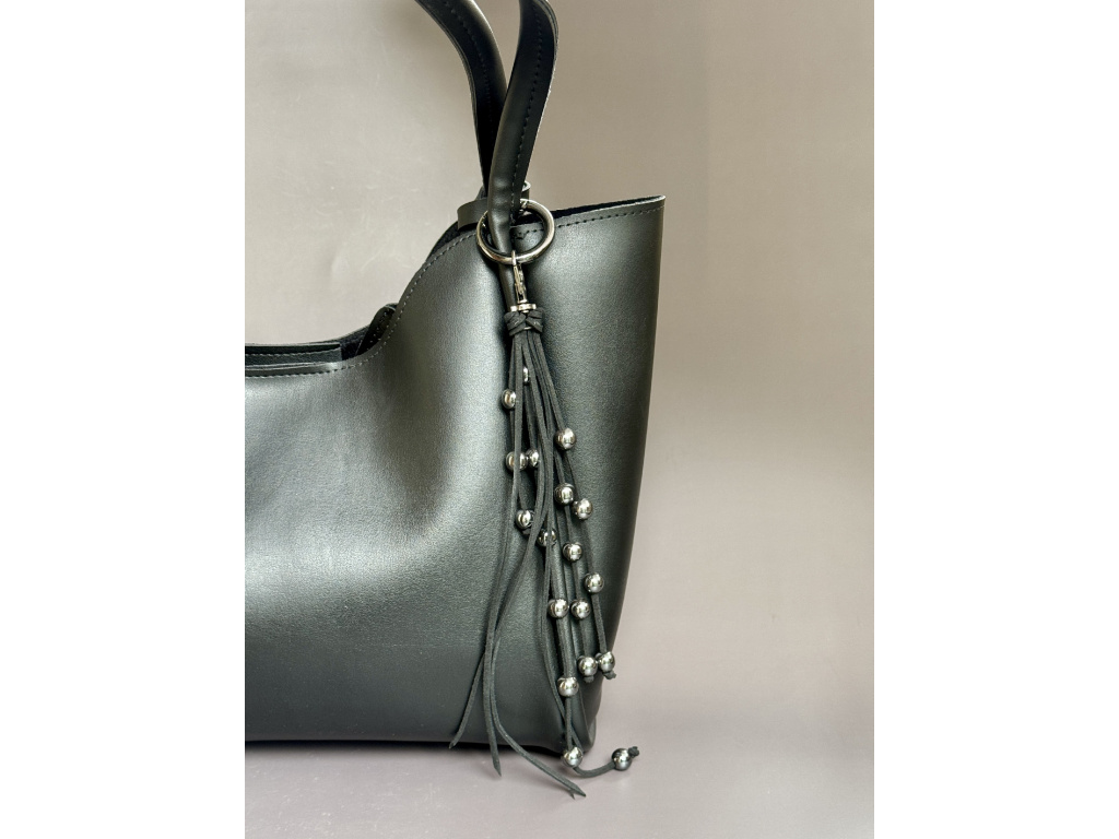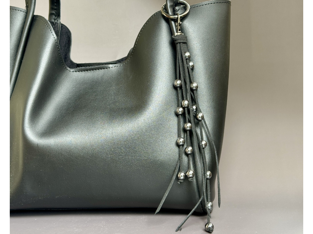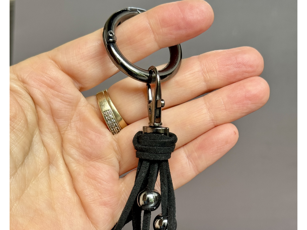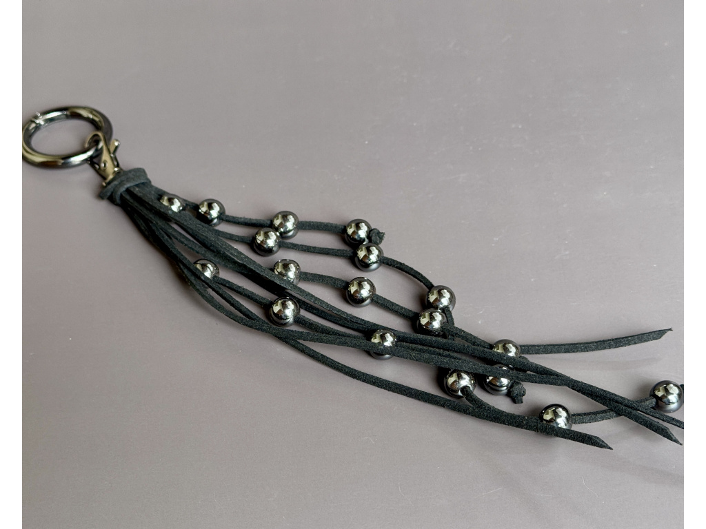 Designový přívěsek na kabelku s hematitem a eko kůží
