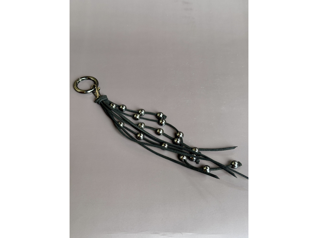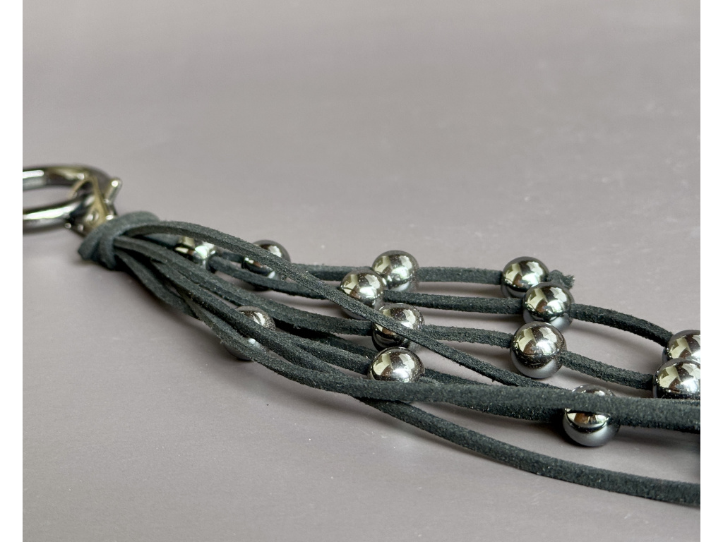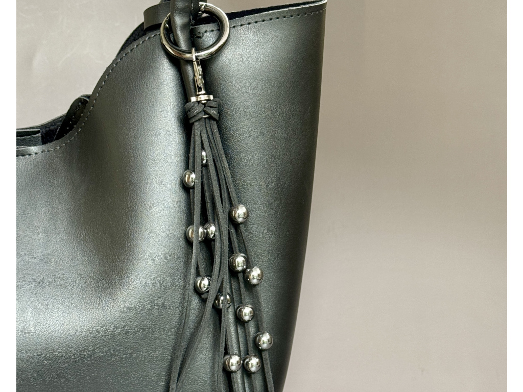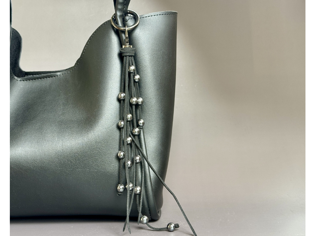 Designový přívěsek na kabelku s hematitem a eko kůží
