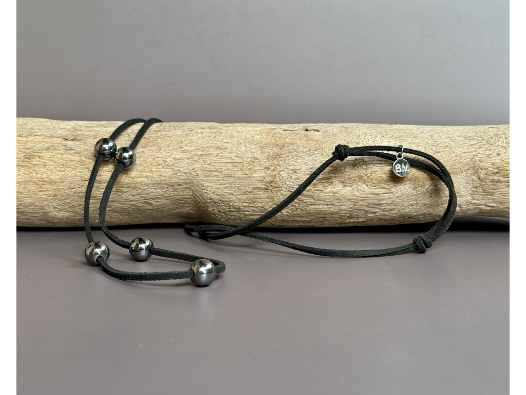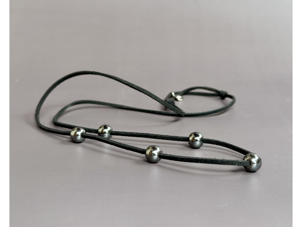 HEMATITOVÝ NÁHRDELNÍK NA EKOKŮŽI - BARVA ČERNÁ