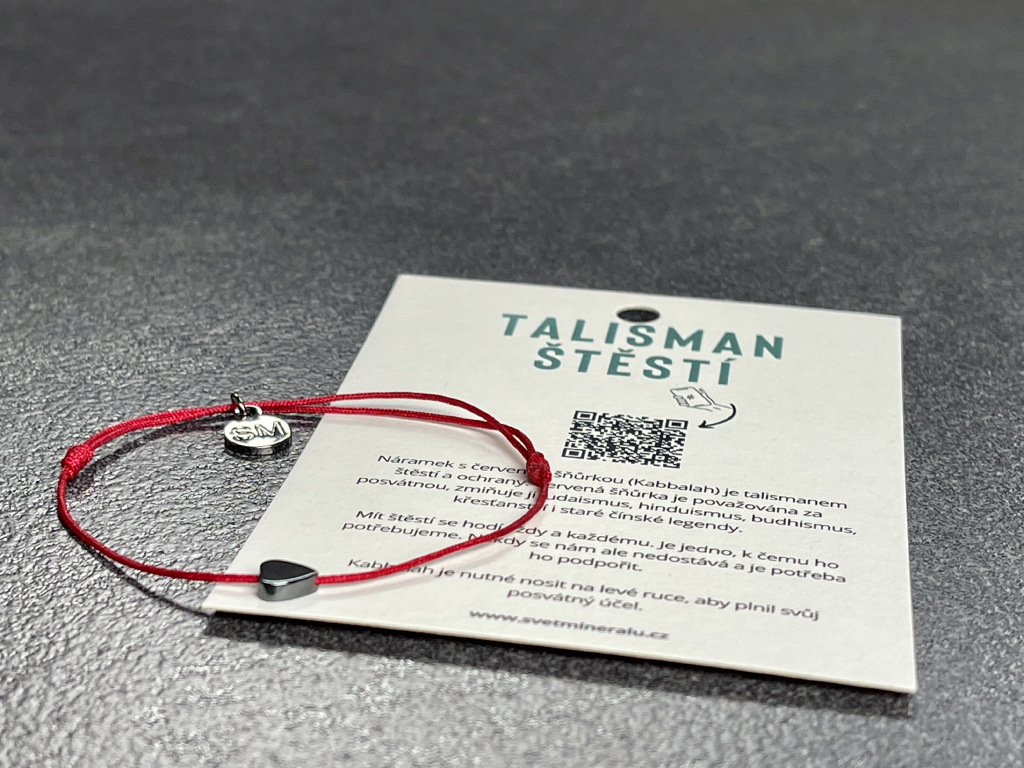 Náramek simple "TALISMAN ŠTĚSTÍ" - hematit, červená šňůrka