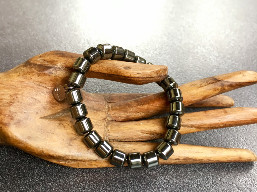Ochranný kámen hematit v krásném náramku z válečků vám bude ochraňovat zdraví a pomůže bojovat s přejídáním a dalšími špatnými návyky.