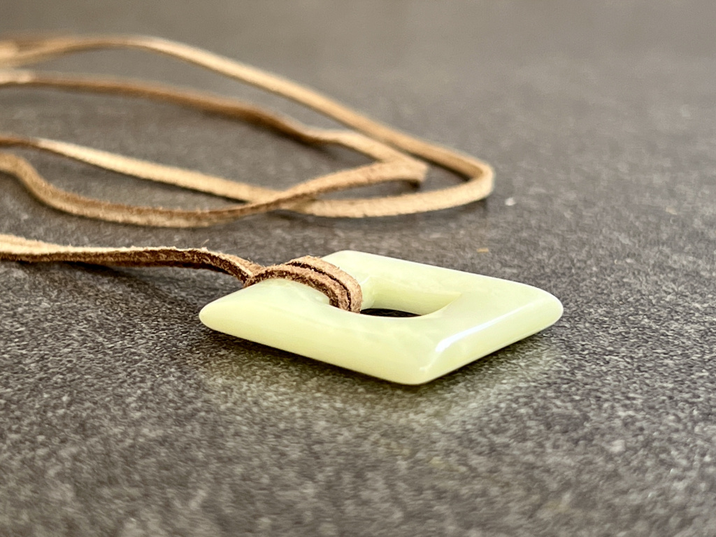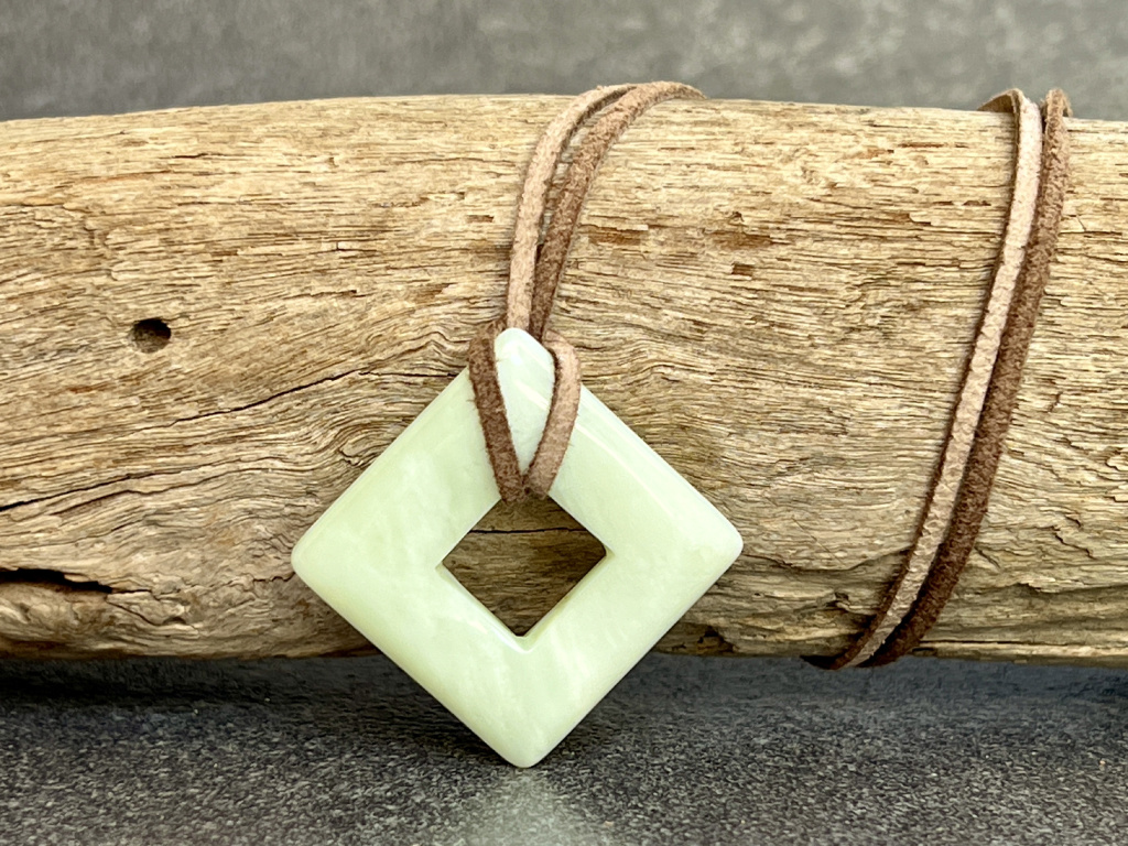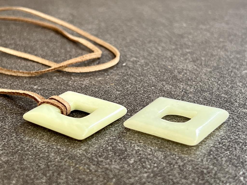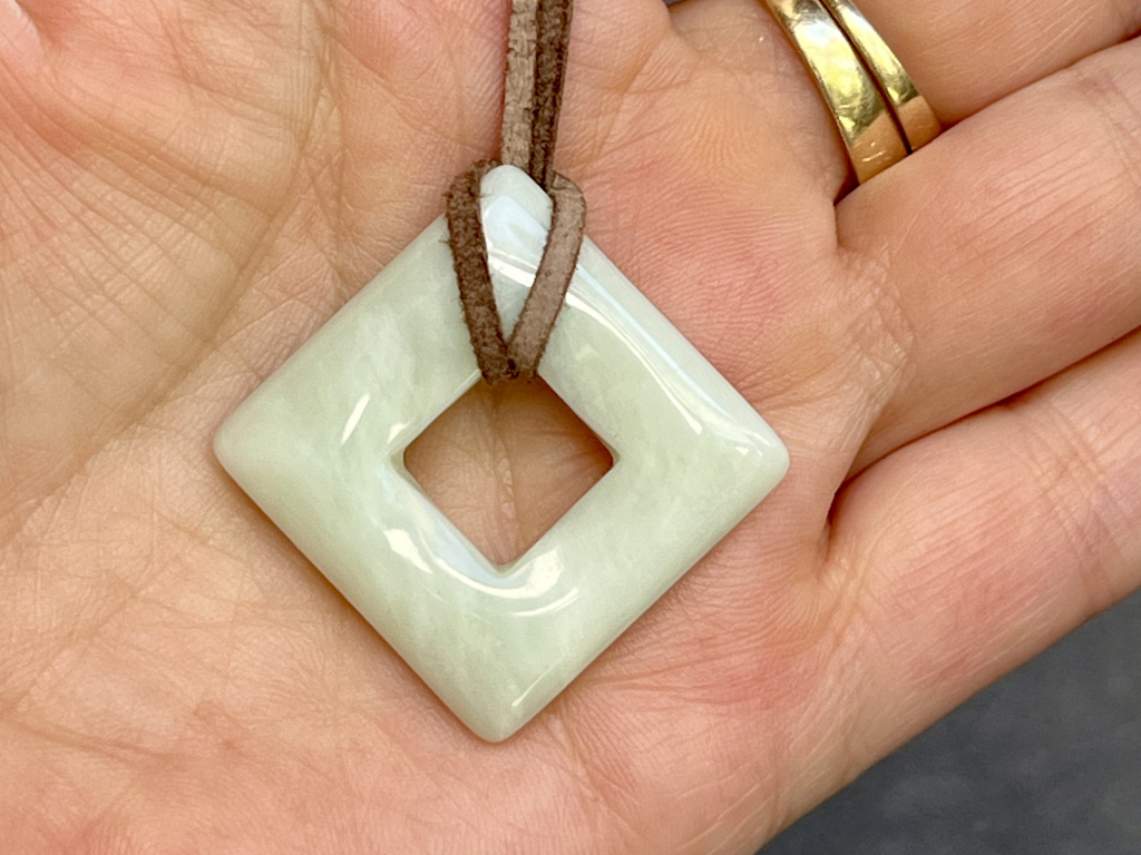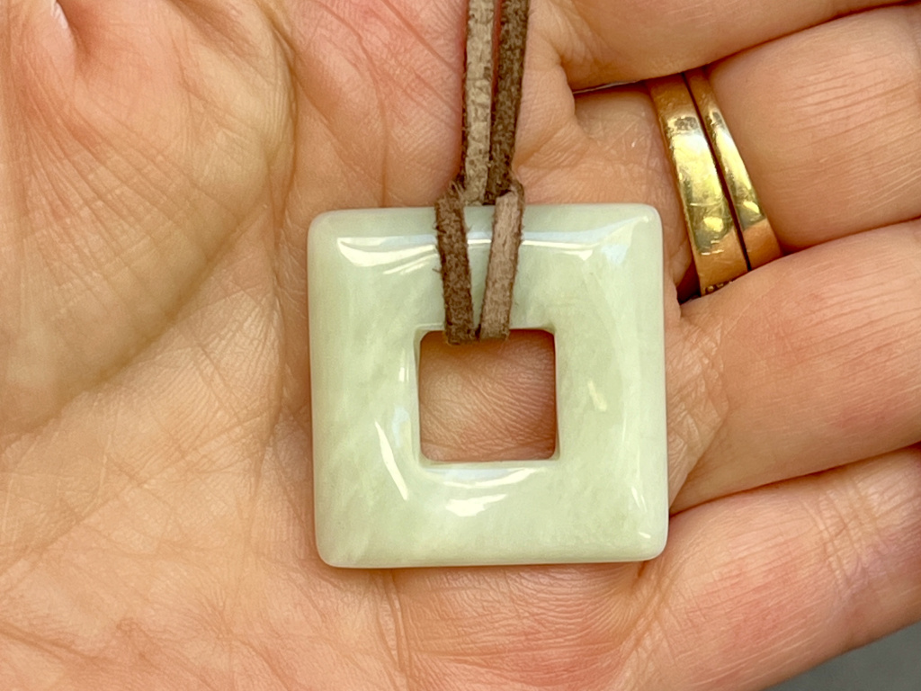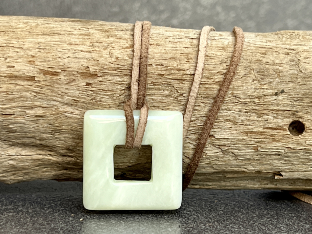 Jadeit přívěsek - donut čtverec - 2,8 x 2,8 cm