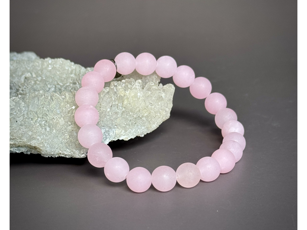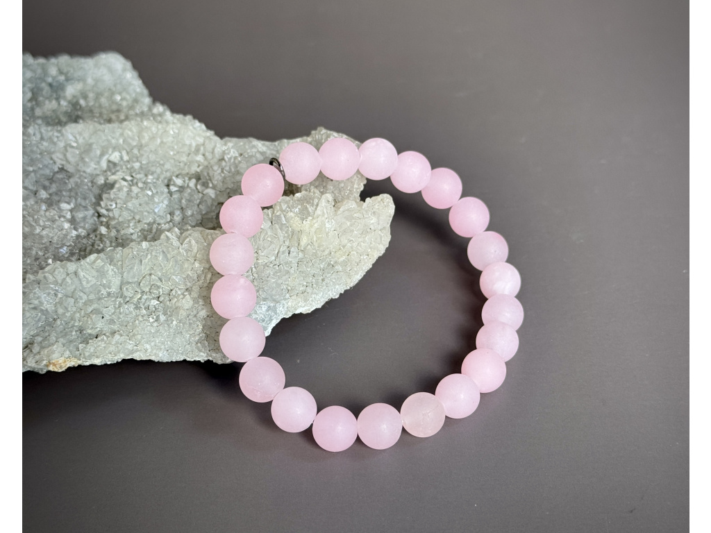 Dopřejte si kousek klidu a harmonie s náramkem z růžového matného jadeitu. Tento elegantní náramek v jemné růžové barvě vyniká svým matným povrchem a pozitivní energií, kterou si zamilujete. Růžový jadeit patří mezi oblíbené ochranné kameny, které přitahují štěstí, přátelství a prosperitu.